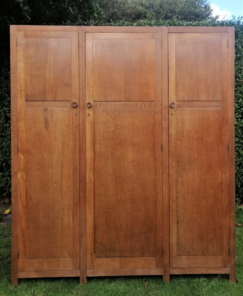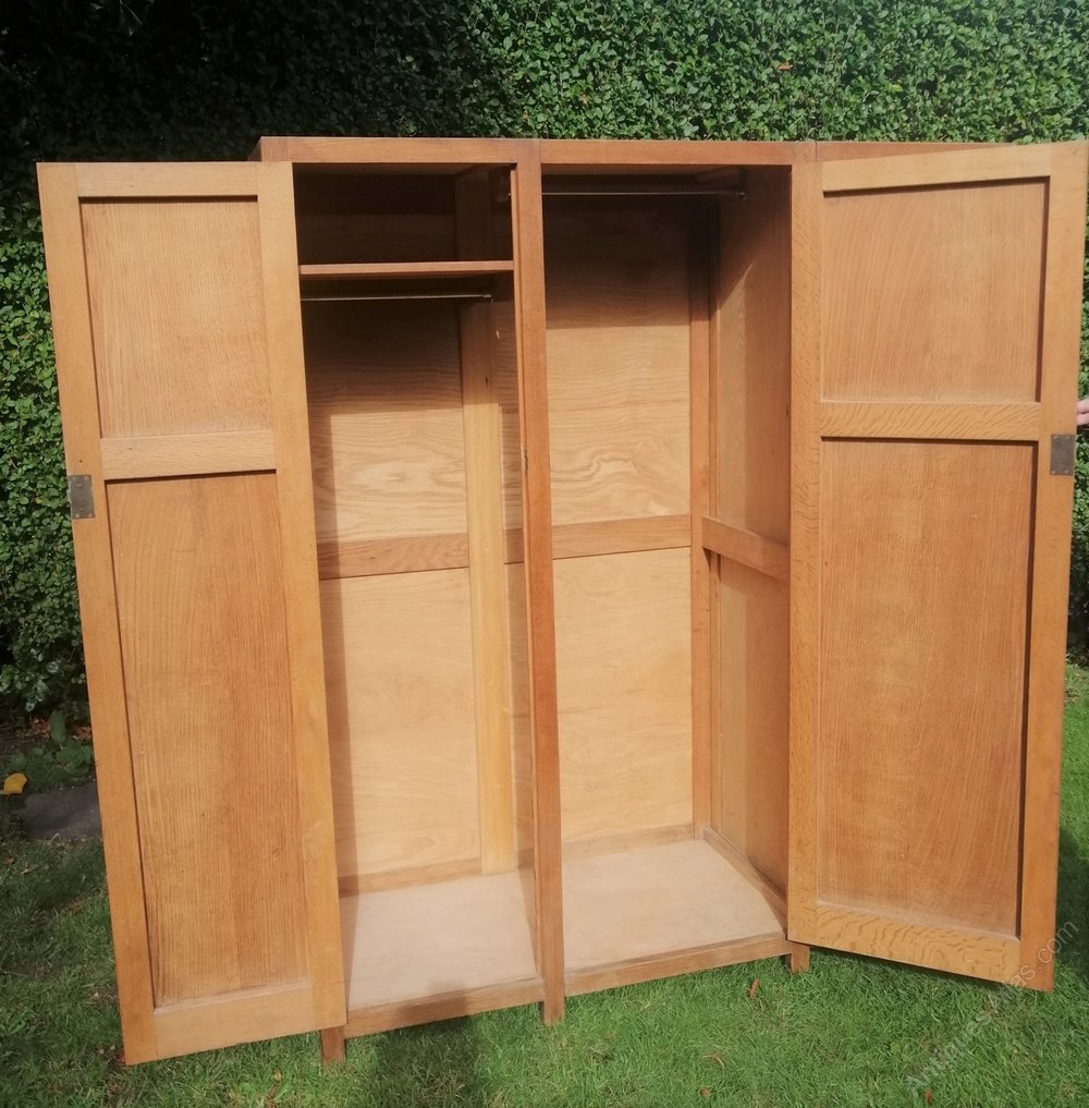 A good size Triple door wardrobe, solid Limed Oak. Manufactured and sold through Heals and son London.