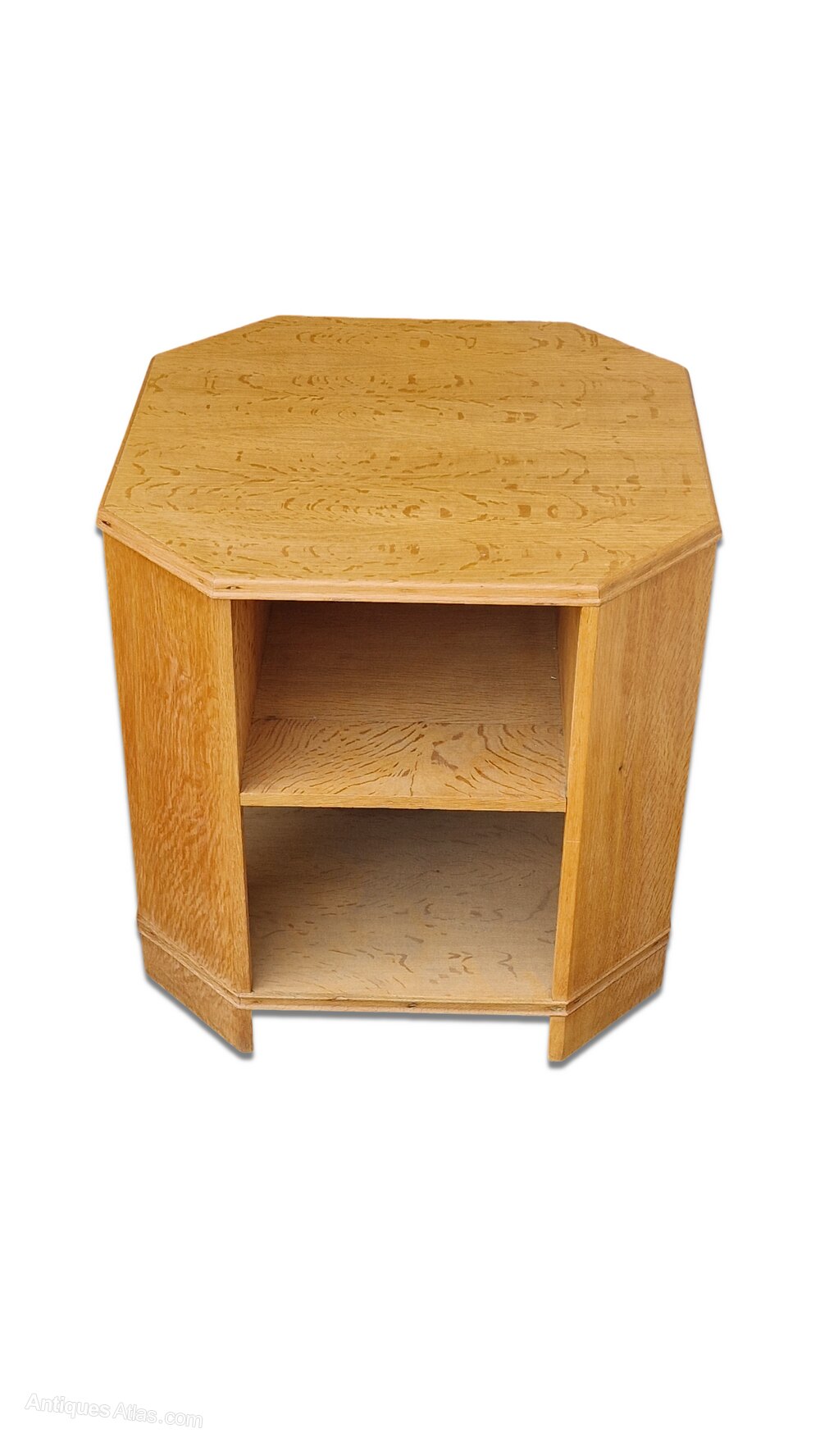 An octagonal oak book table by Heal's c.1930. Constructed in well figured, quarter sawn oak.