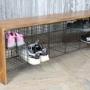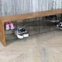 Metal caging sits underneath the shoe rack, offering space to store your footwear, but also gives a tough, industrial feel to the shoe rack. The wooden frame offers ample seating space to sit while taking off shoes and boots.