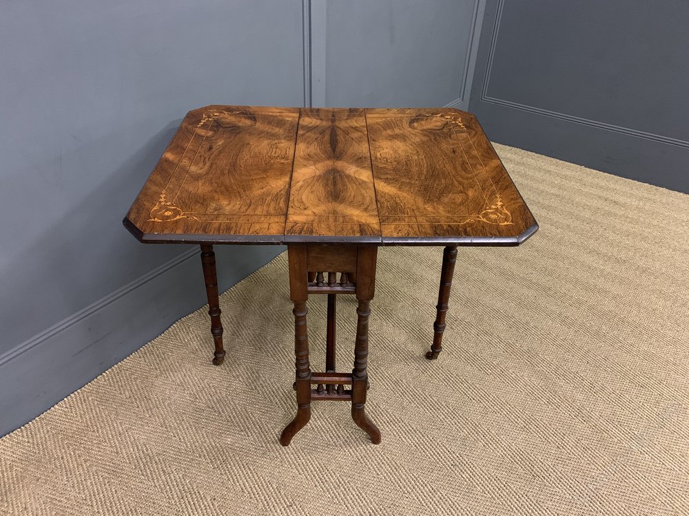 A charming late Victorian period inlaid rosewood Sutherland table. Cleaned and waxed in our workshops and now offered for sale in very good original condition.