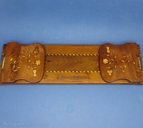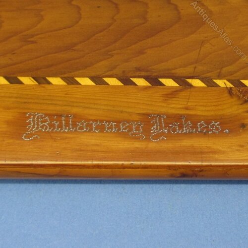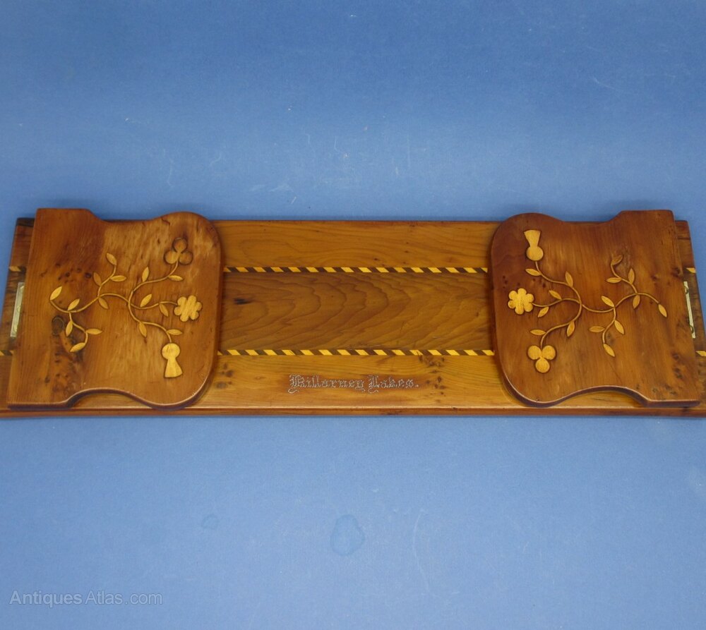 This is an Irish Yew Killarney Lakes Bookrest, decorated with Shamrocks, thistles, flowers, leaves with the inlay in Boxwood and Arbutus wood?