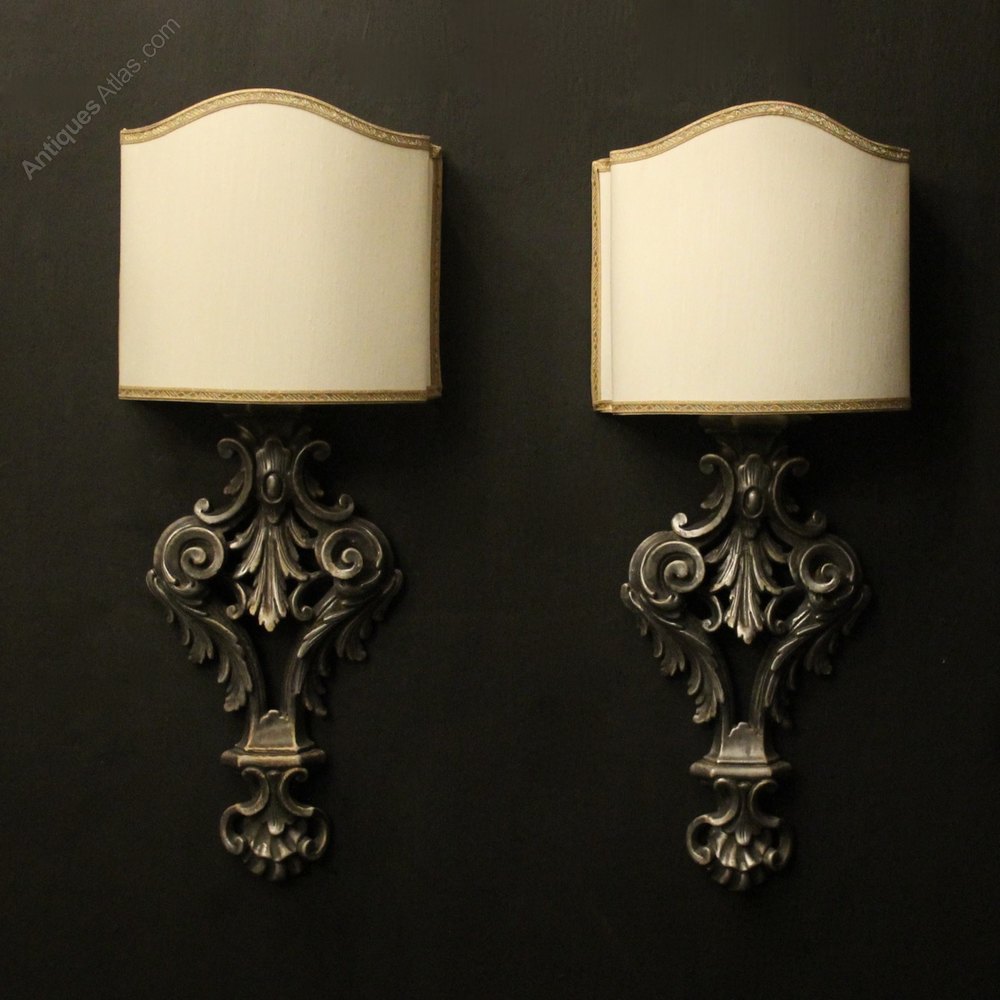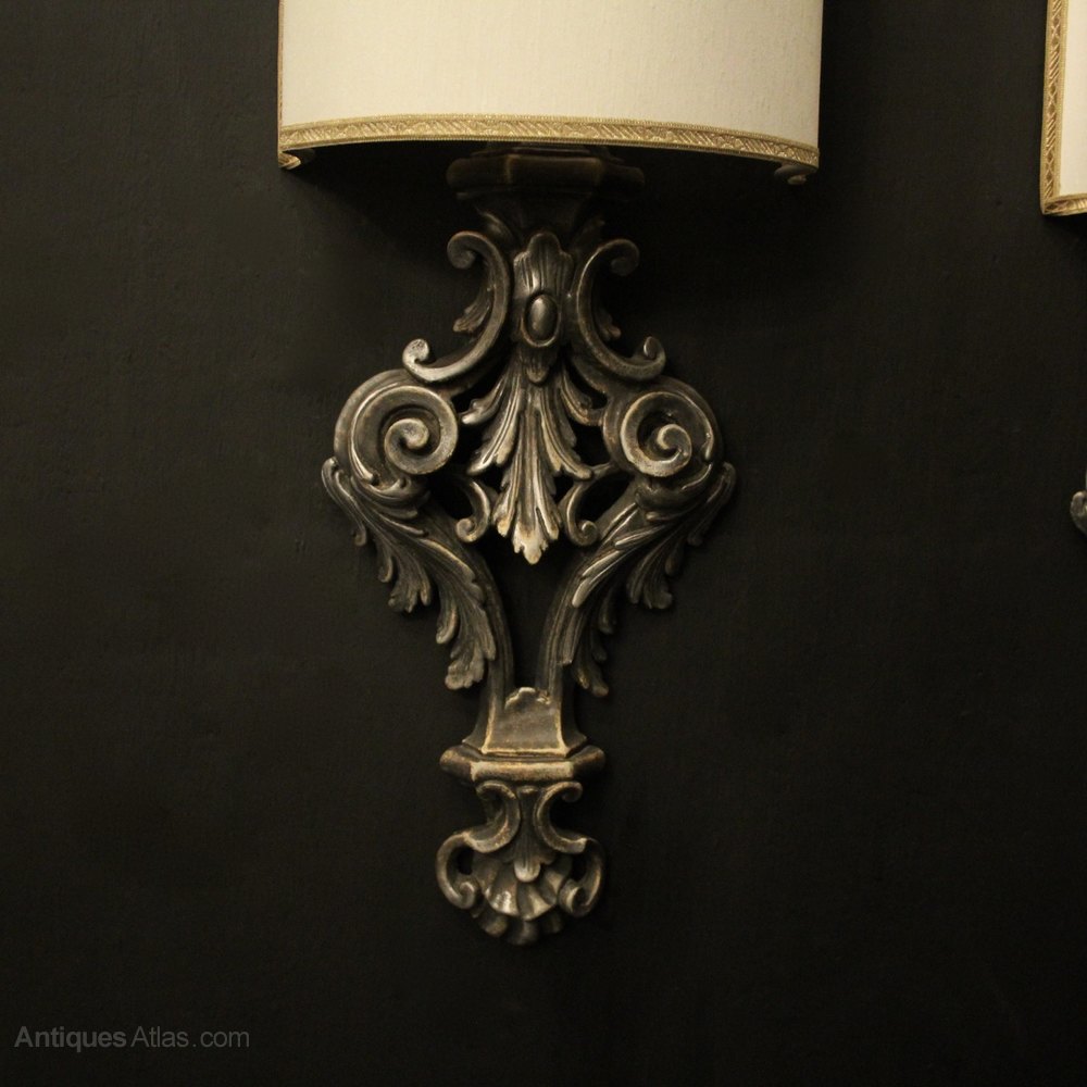 Florentine Silver Giltwood Antique Wall Lights
