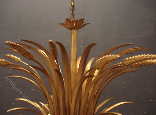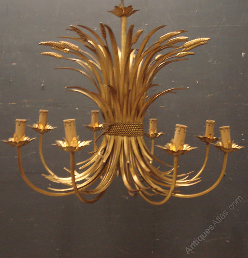 Ref 4703 - Old Italian 8 arm gilt painted metal wheatsheaf chandelier. Old wiring needs checking. Circa 1960.