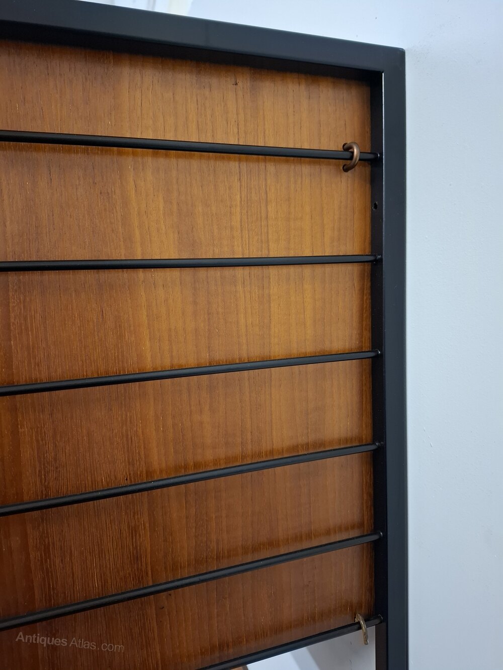 Very flexible, teak veneer and black powder coated steel shelving uprights by Staples & Co., London 1960s.This stylish practical product was designed by Robert Heal (of the Heals store family) in the 1960s and manufactured in England.
