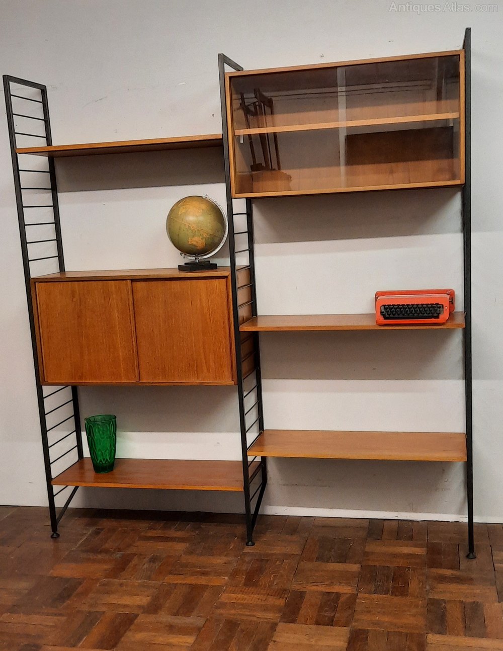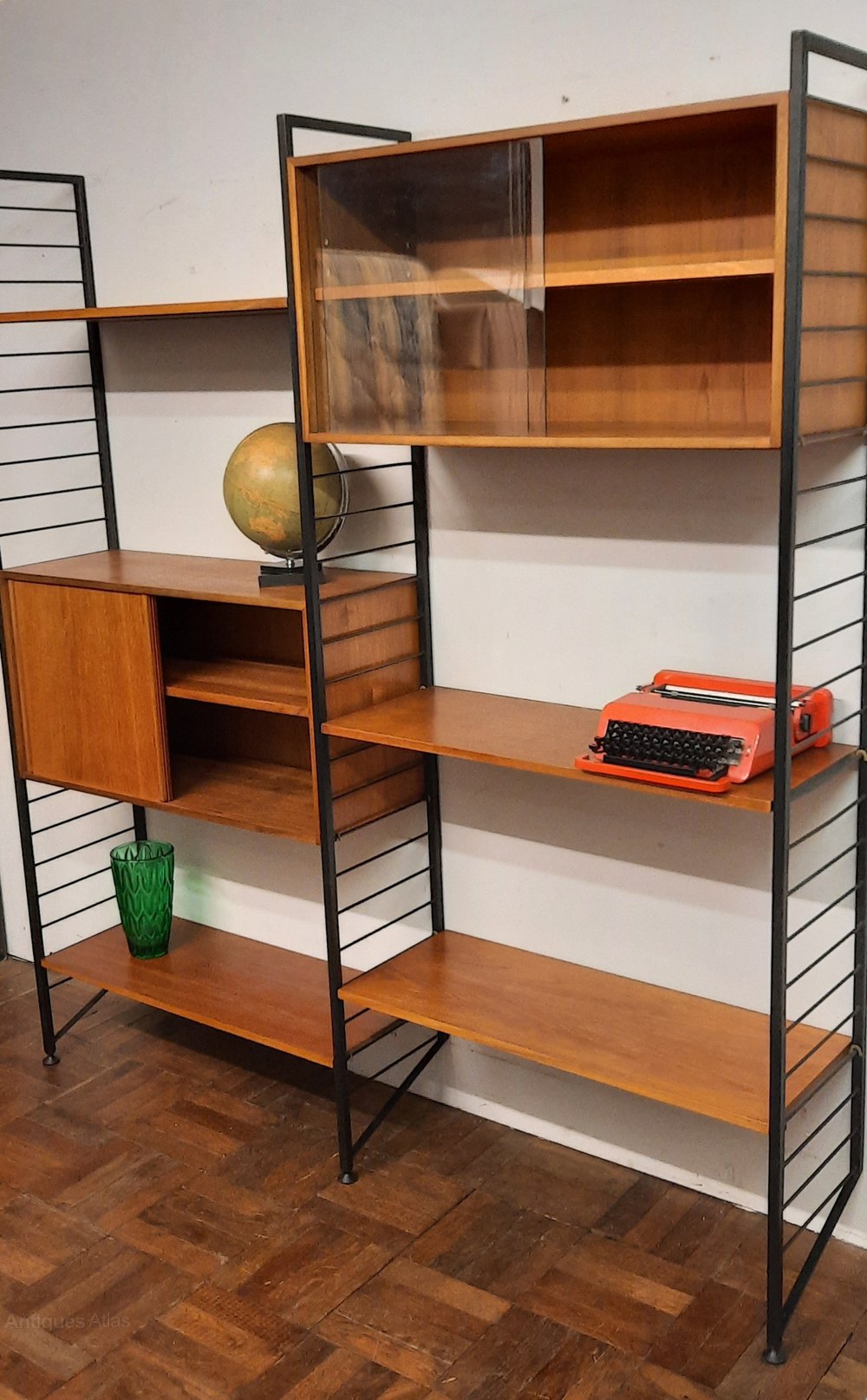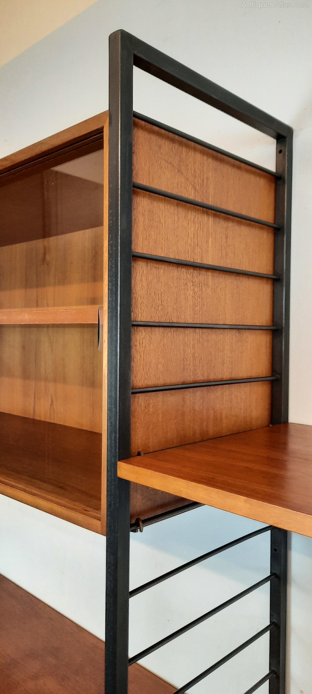 1960s British made Ladderax shelving .Very versatile design made from teak veneers with iron ladders. Each ladder has an adjustable nylon foot.