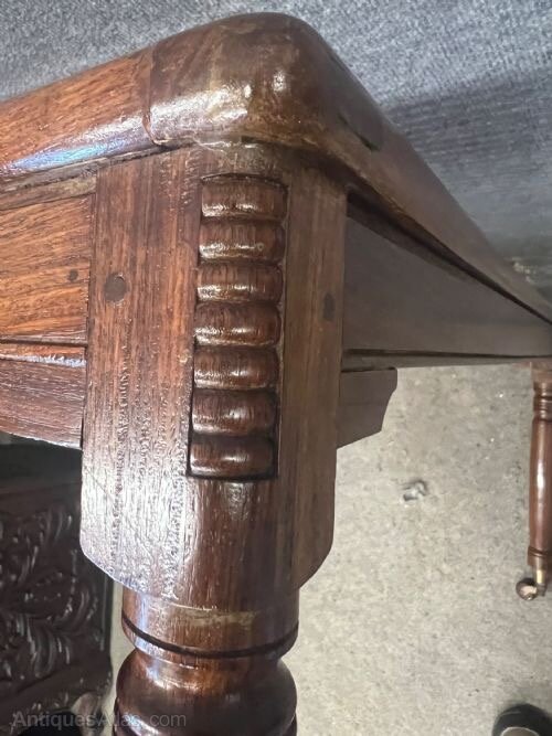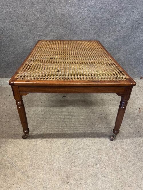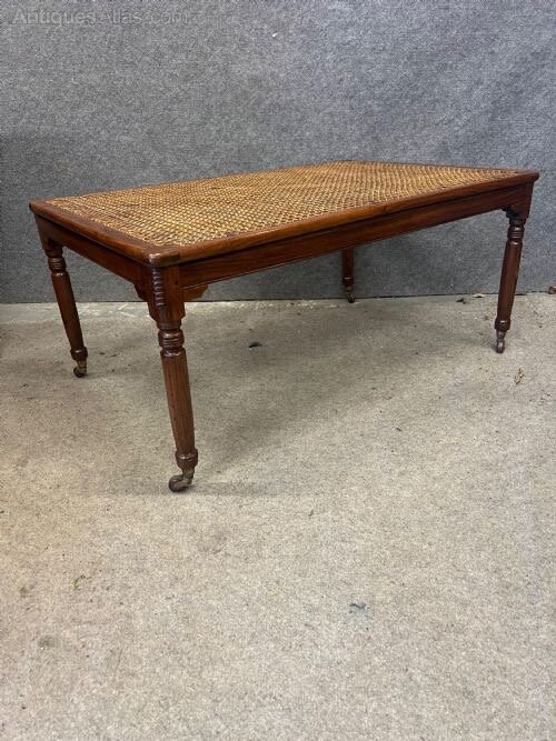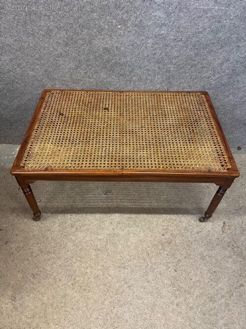 An early 19th.C. teak and cane stool or luggage stand. The reeded edge frieze having supporting corner brackets and carved detail to the corners. The whole raised on tapering baluster turned legs with brass cup and pottery casters. The inset cane top is in very good condition with no damage just one or two marks associated with age and use. Dimensions:- Height…20''/ 51cm. Width…30''/ 76cm. Depth…24''/ 61cm. Delivery by furniture carrier £40.