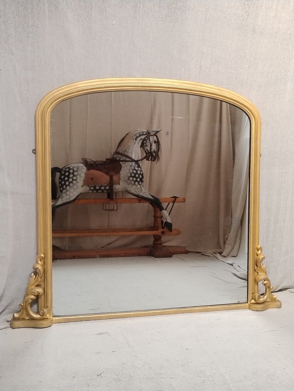 Large Antique Gilt Overmantle Wall Mirror c1860
