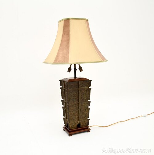 An impressive and beautifully made large antique oriental bronze table lamp, made in the far East and dating from around the 1930’s.