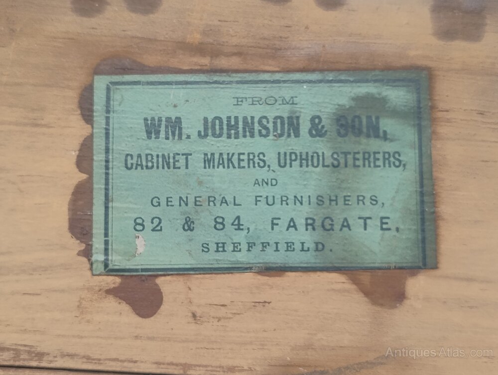 Makers label to rear of frame from the well respected firm of "W. M. Johnson & Son, Fargate, Sheffield".
