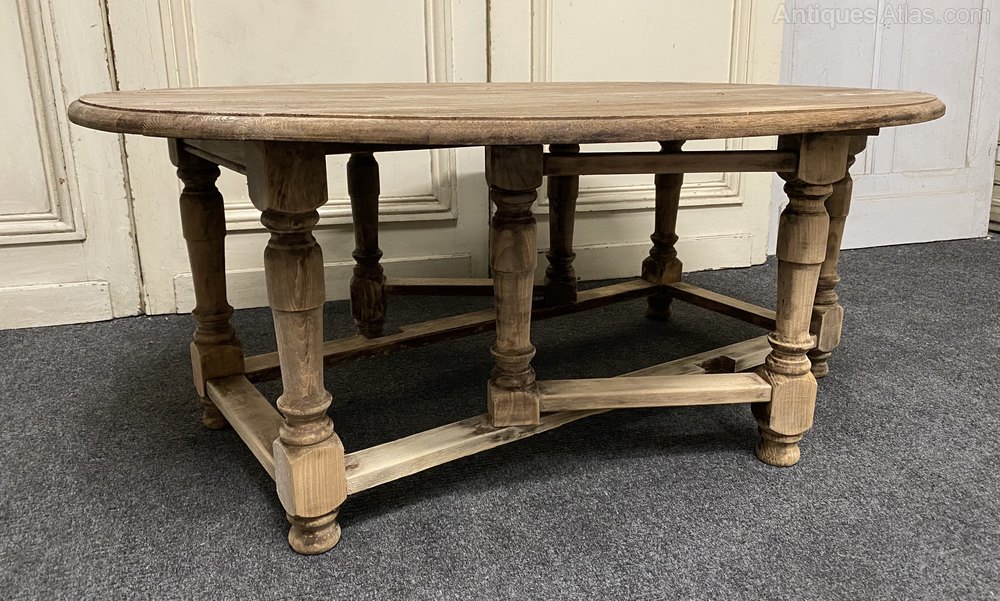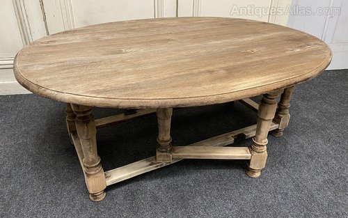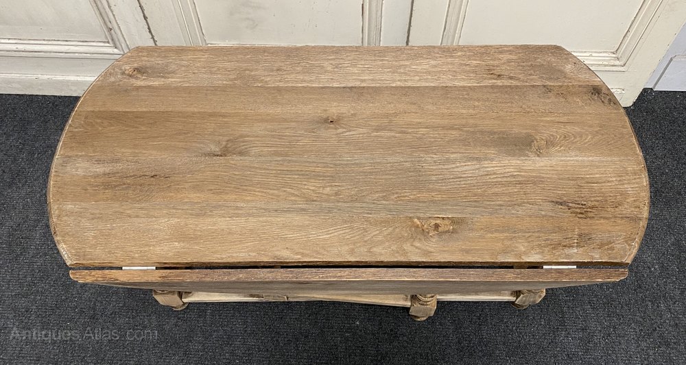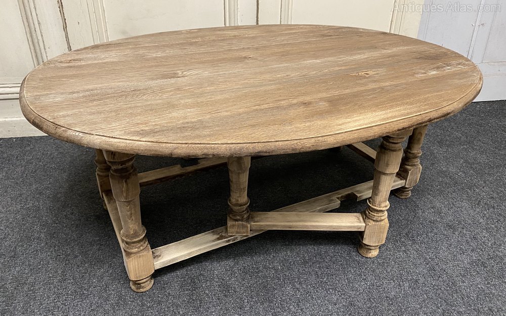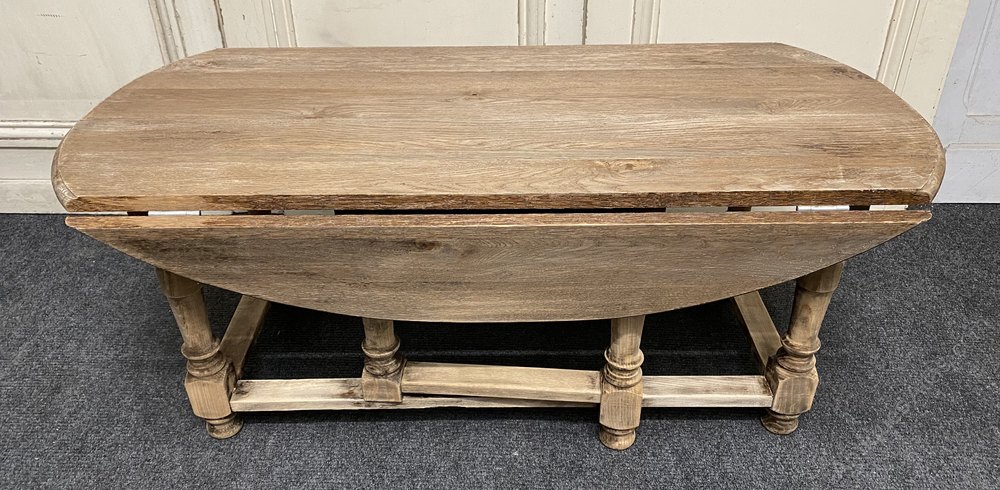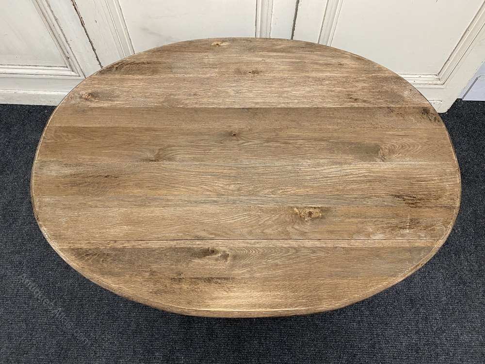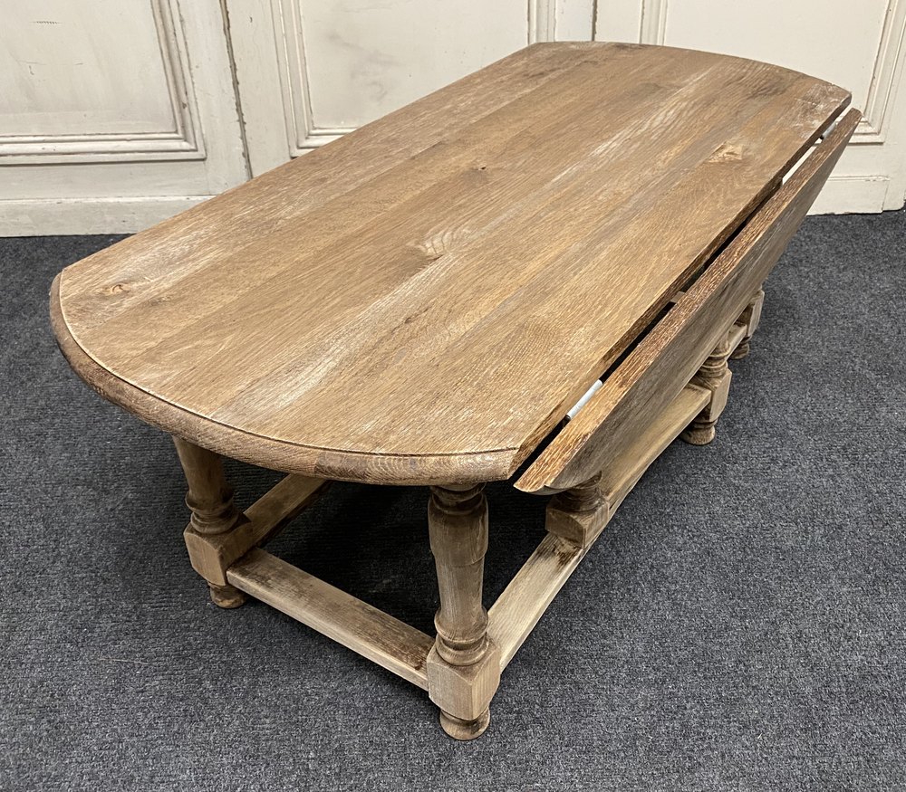 A lovely oval Coffee Table made from Oak which we have bleached. Nice feature having the 2 flaps that life up so could be oblong or oval.