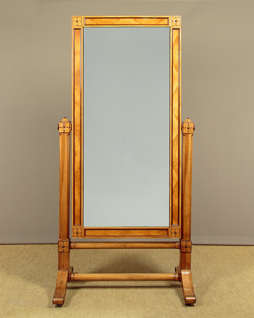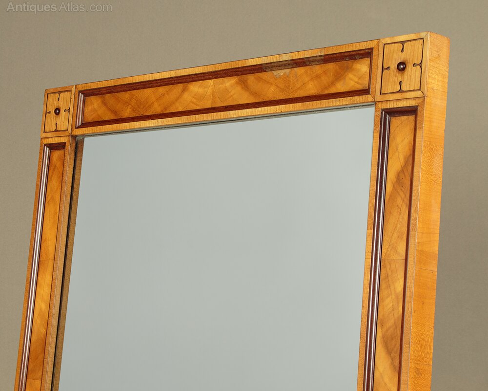 Art Deco Figured Walnut Cheval Floor Mirror