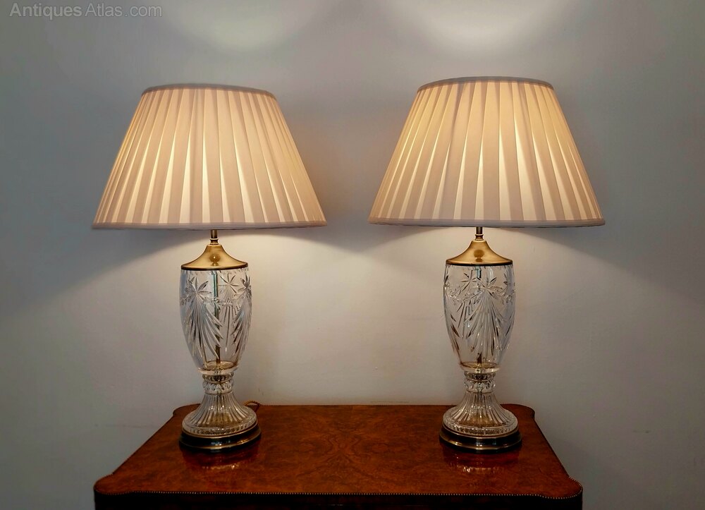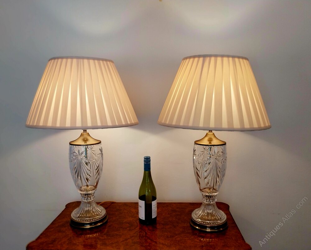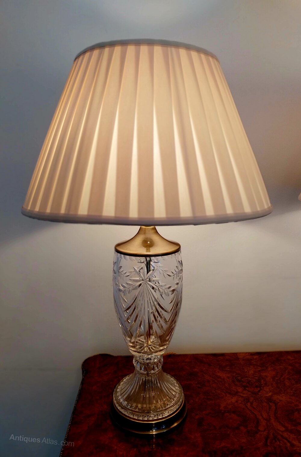 These Pair of Cut Glass Lamps have been re-wired with gold braided cable and they have also been Pat Tested.