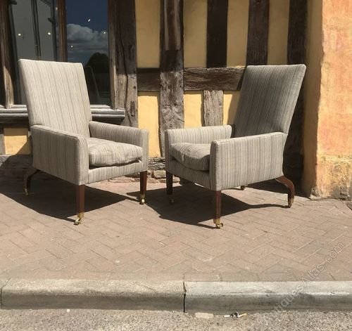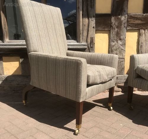 Large Pair of mahogany library armchairs, one armchair late 18th early 19thC, one made of later date.