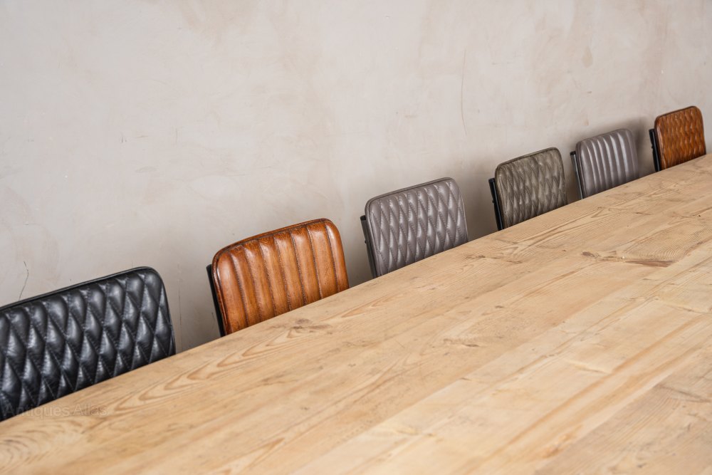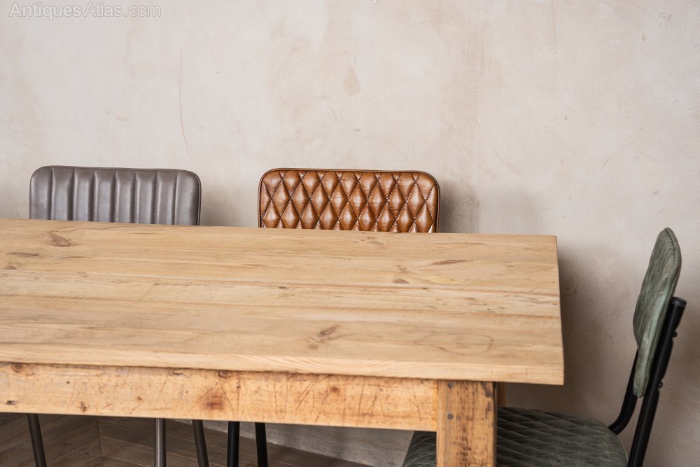 A beautiful, Large Reclaimed Pine Farmhouse Table for your large kitchen or commercial space. With plenty of authentic marks and scratches, this characterful table will bring vintage charm to your space. Made with reclaimed pine, this robust table was made for people with large families who need a table that can do it all.