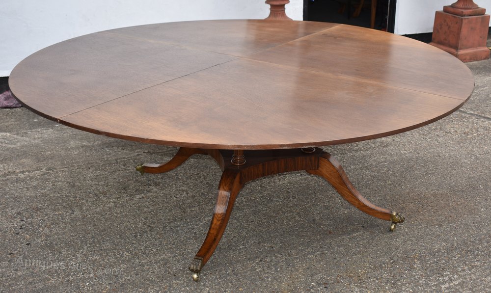 Width: 90" Depth: 90" Height: 32" (with leaves) FB Antiques, long standing members of LAPADA (London and Provincial Antique Dealers Association), has been established since 1960 in London and had three shops supplying the home and overseas trade. We relocated from London 30 years ago to Rayleigh in Essex, to a 40,000 sqft warehouse from which we shipped approximately 120 containers a year. 5 years ago we downsized to our storage premises in Rettendon Essex, and now operate from our 15,000 sqft showroom and workshops, still supplying home and overseas trade as well as many members of the general public.