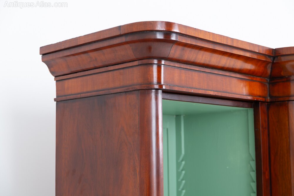 The bookcase is arranged in three open sections, each fitted with four fully adjustable shelves, offering excellent versatility for display and storage. The cornice is of rounded form, adding to the piece’s balanced and elegant proportions.