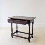 Below sits a single frieze drawer with deep, hand-cut mouldings and later brass drop handles, all raised on turned baluster legs united by plain box stretchers and set on integral ball feet. Its compact size and strong presence make it a versatile piece, equally suited to a hall, study or living space.