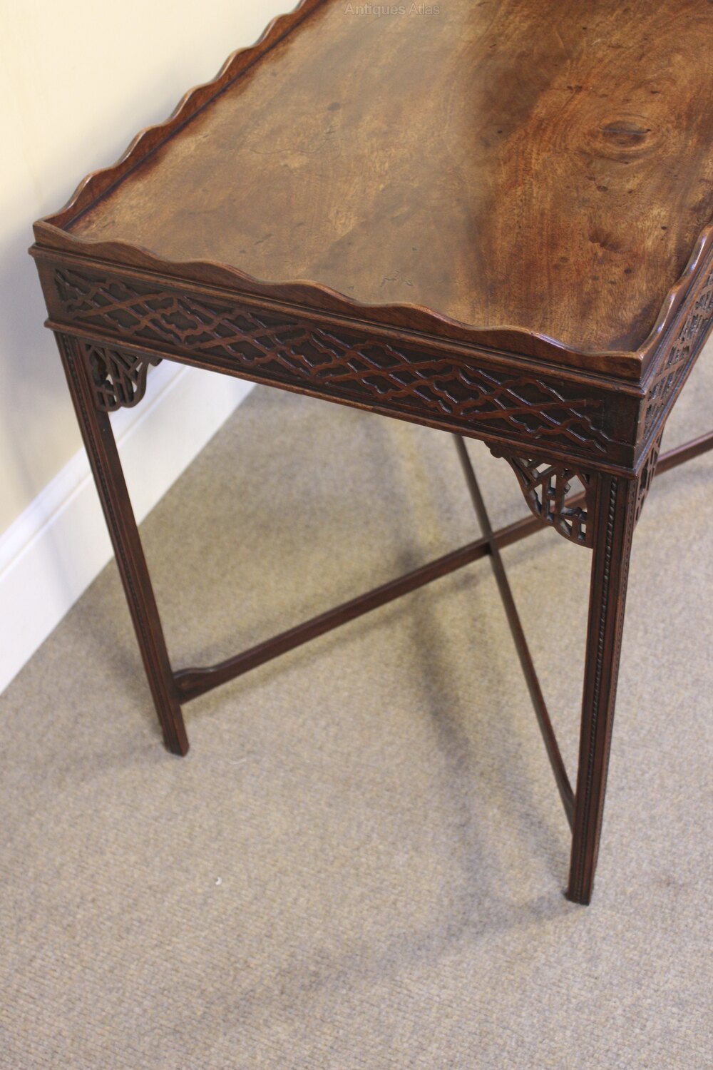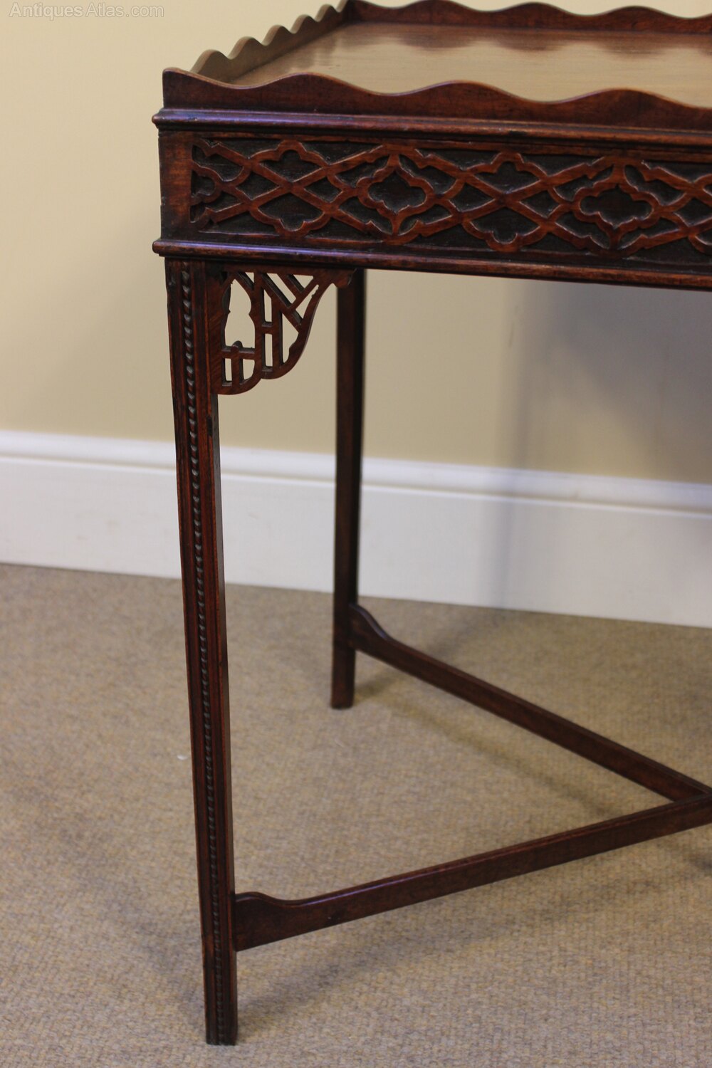 Blind fretwork frieze, fluted and moulded legs.