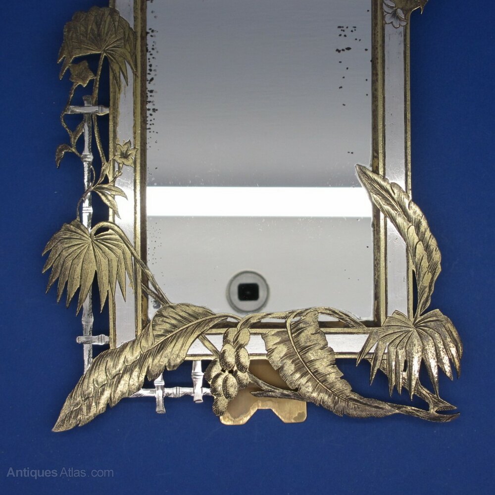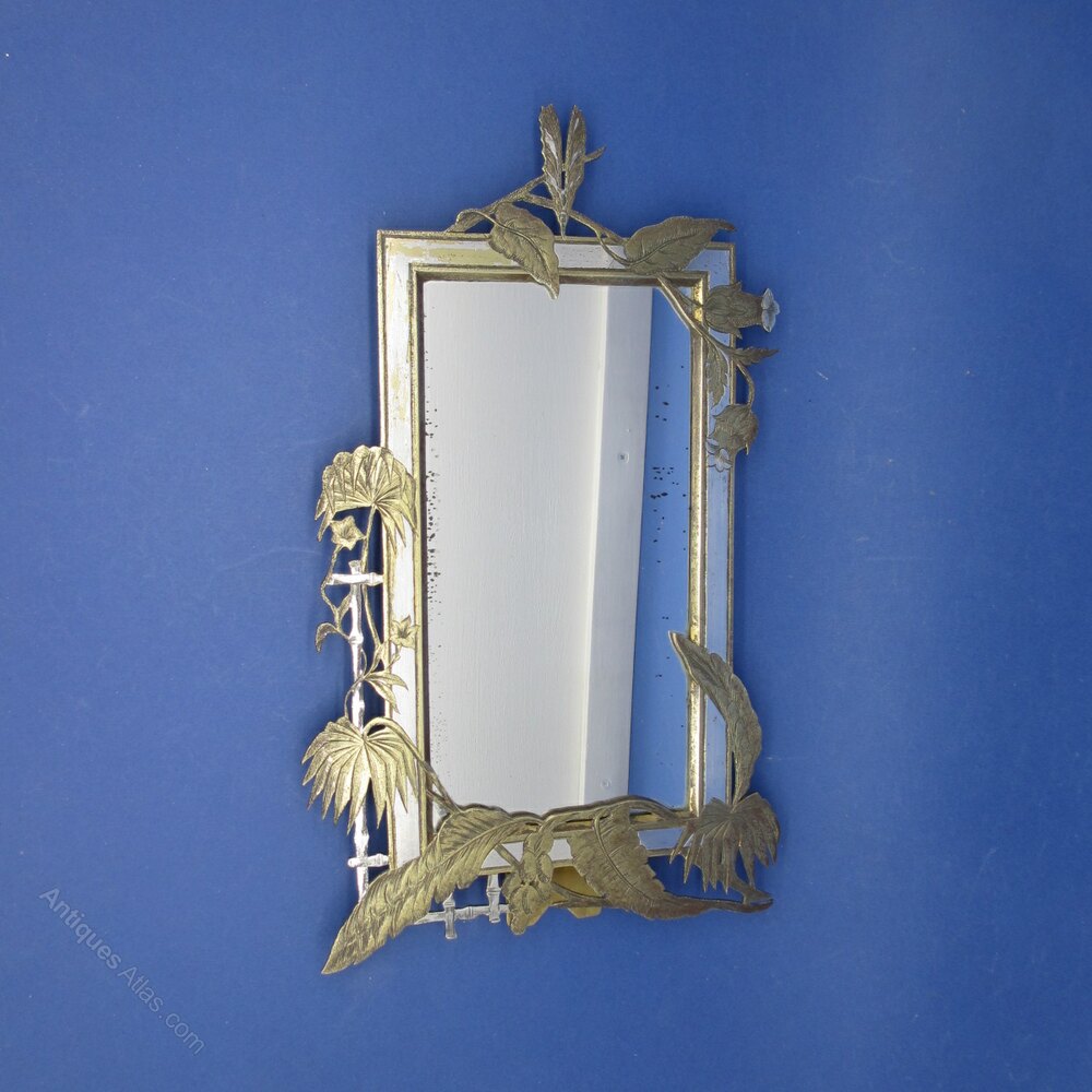 This is an unusual Late Victorian Japanese inspired Aesthetic Movement Mirror/Photo Frame. The frame features Palm Trees and Ferns.