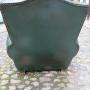 Pair of French, green leather moustache armchairs.