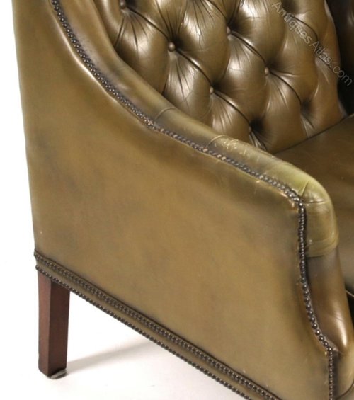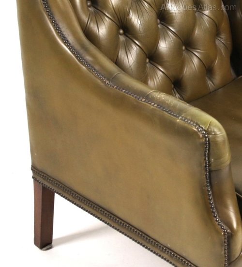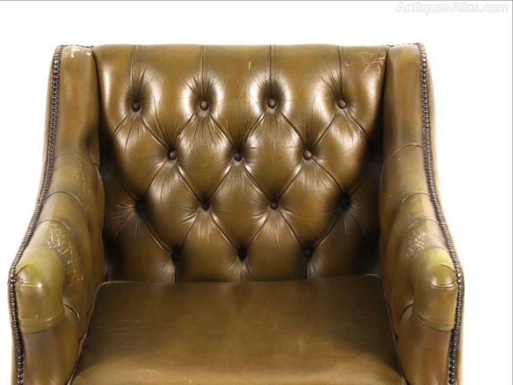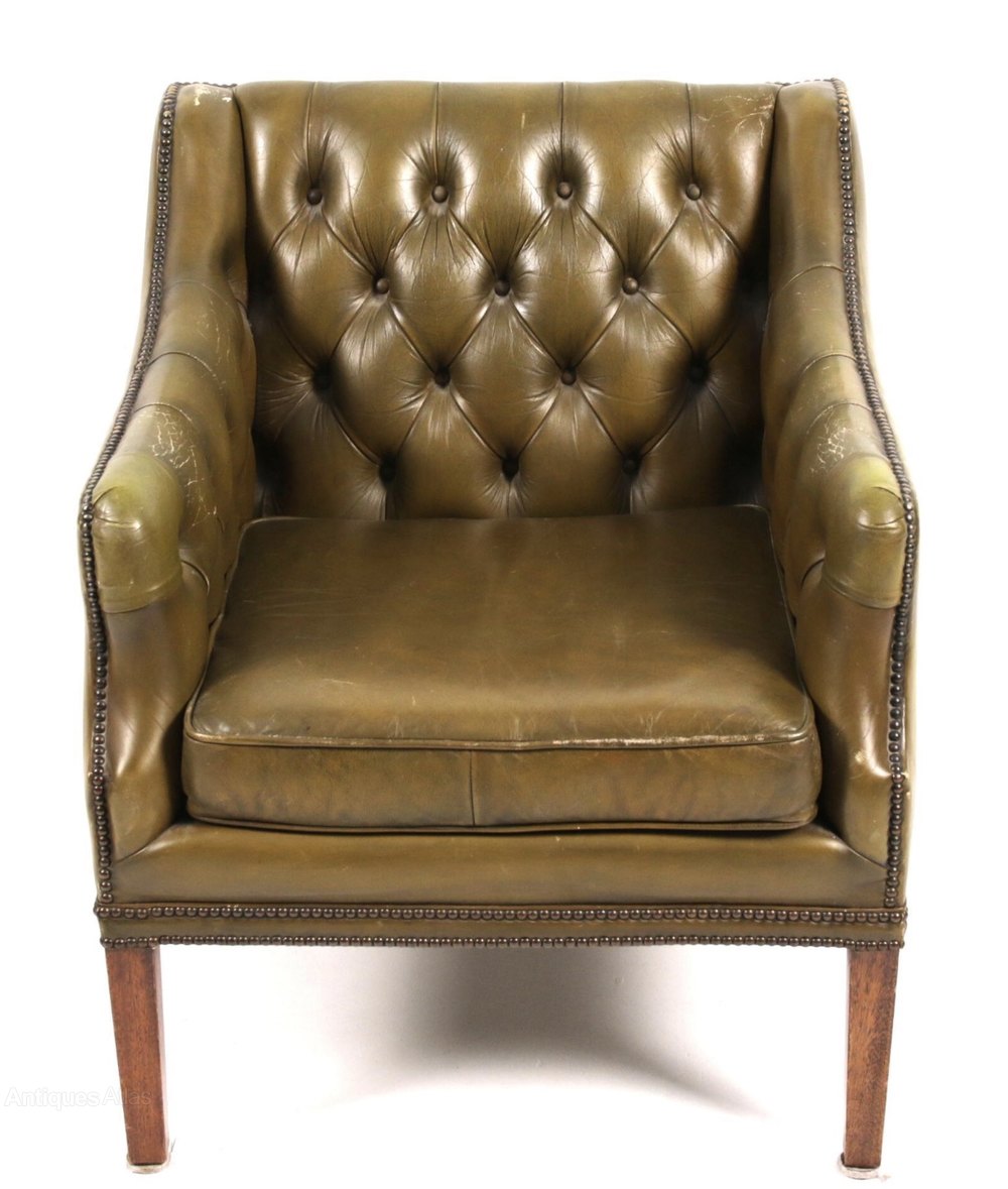 Quality green leather Library armchair in
