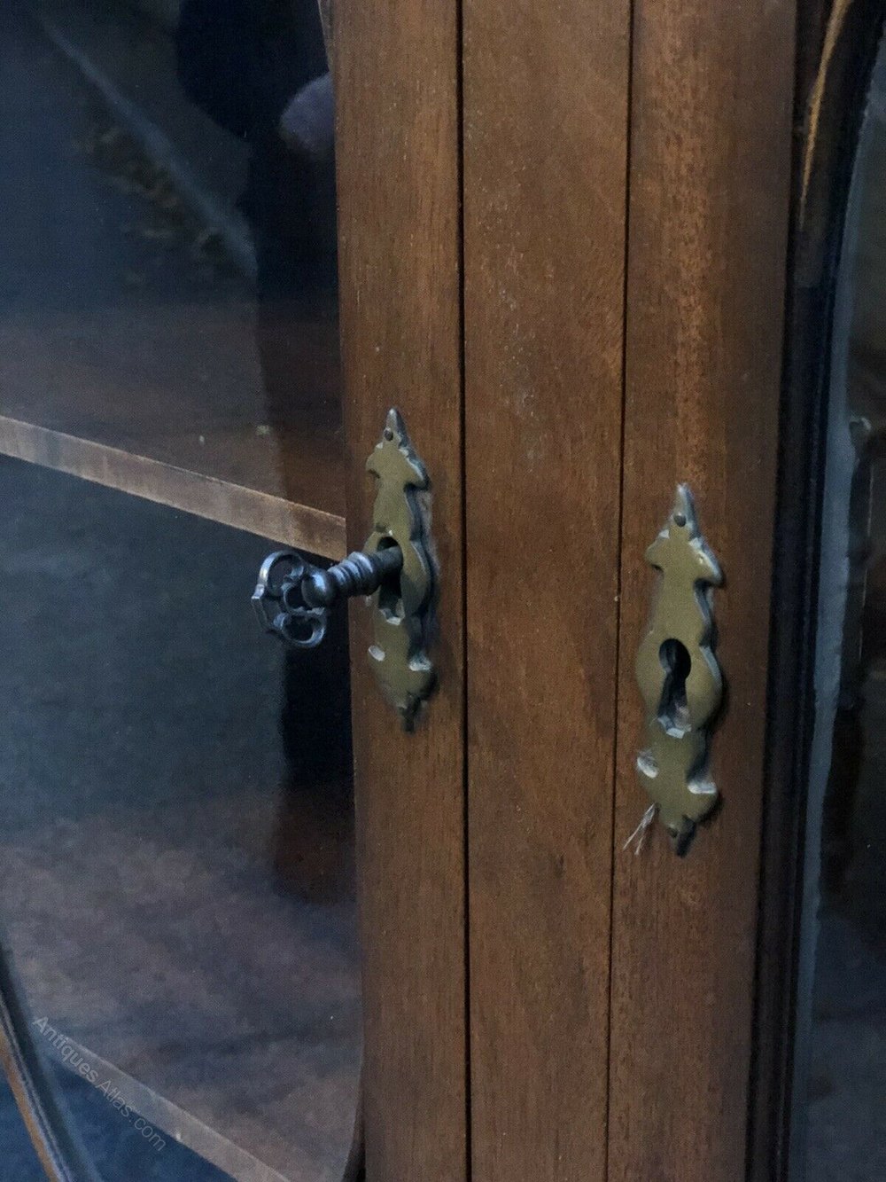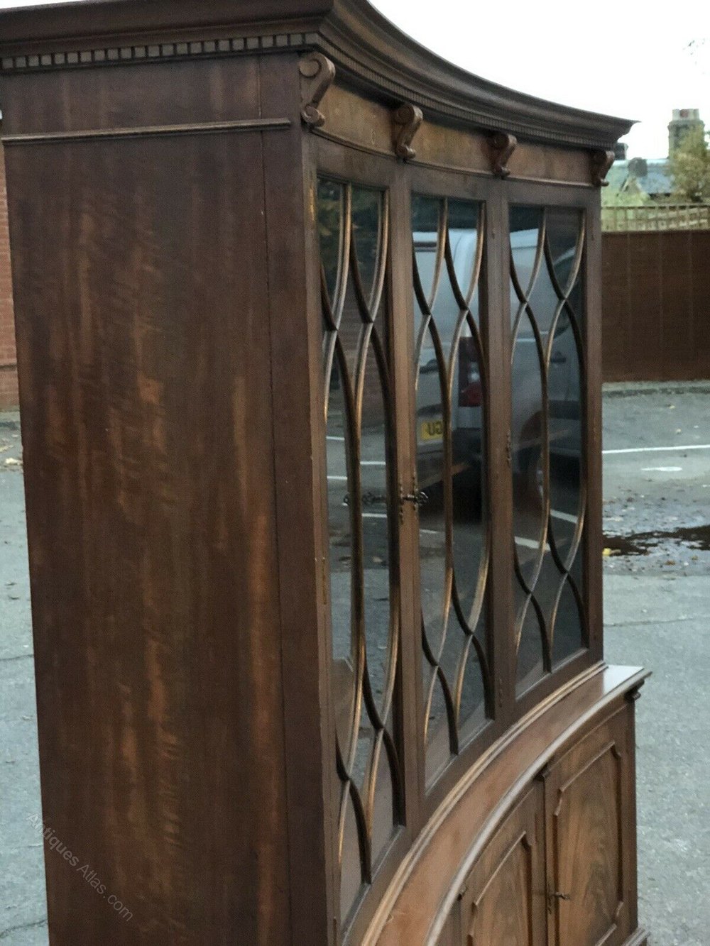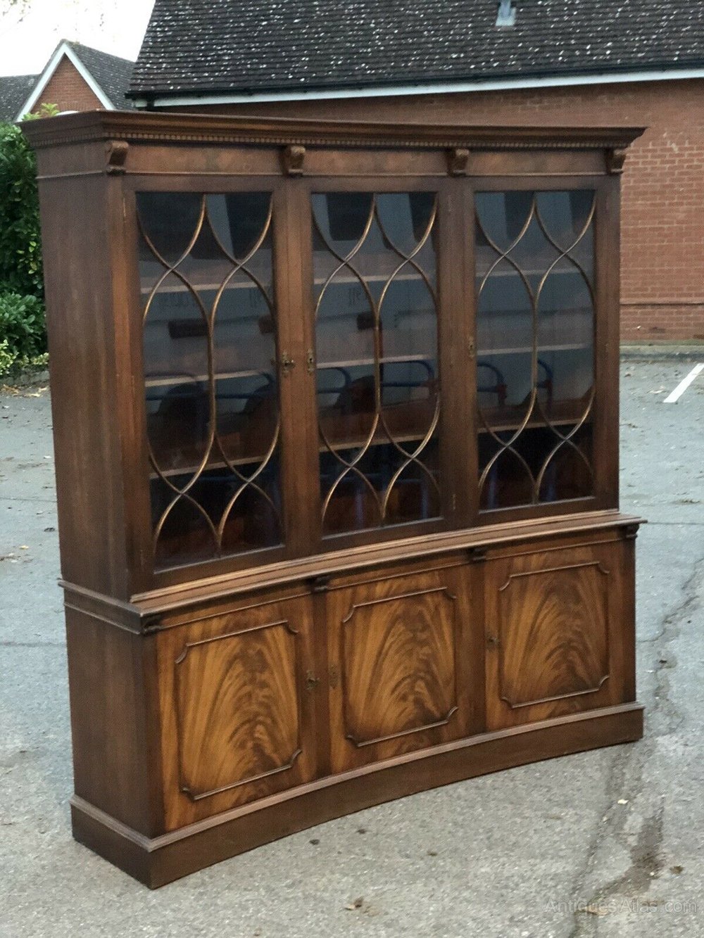 Library Bookcase. Unusual Concave Shaped, Mahogany Veneer, Adjustable Shelves.