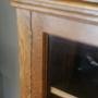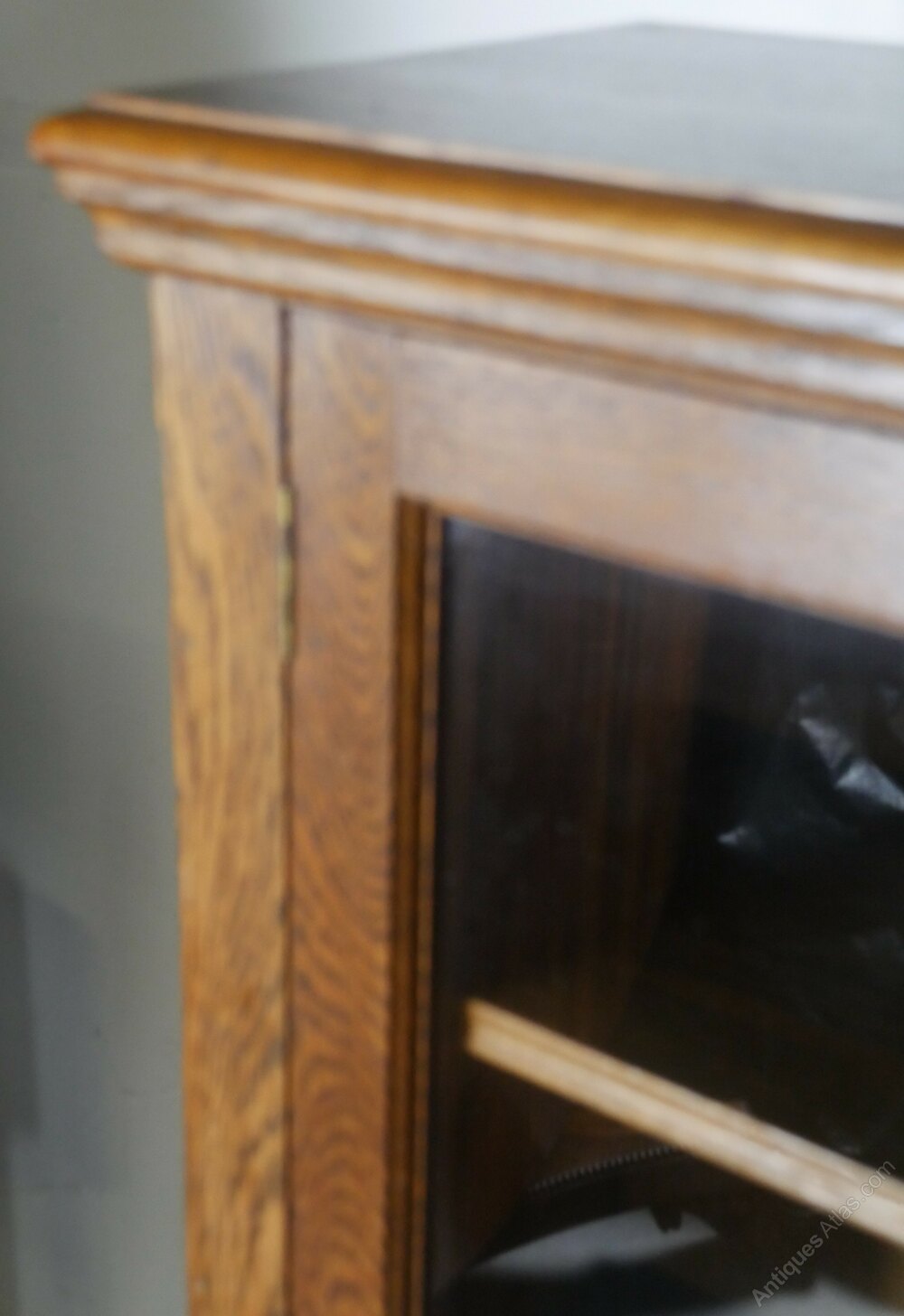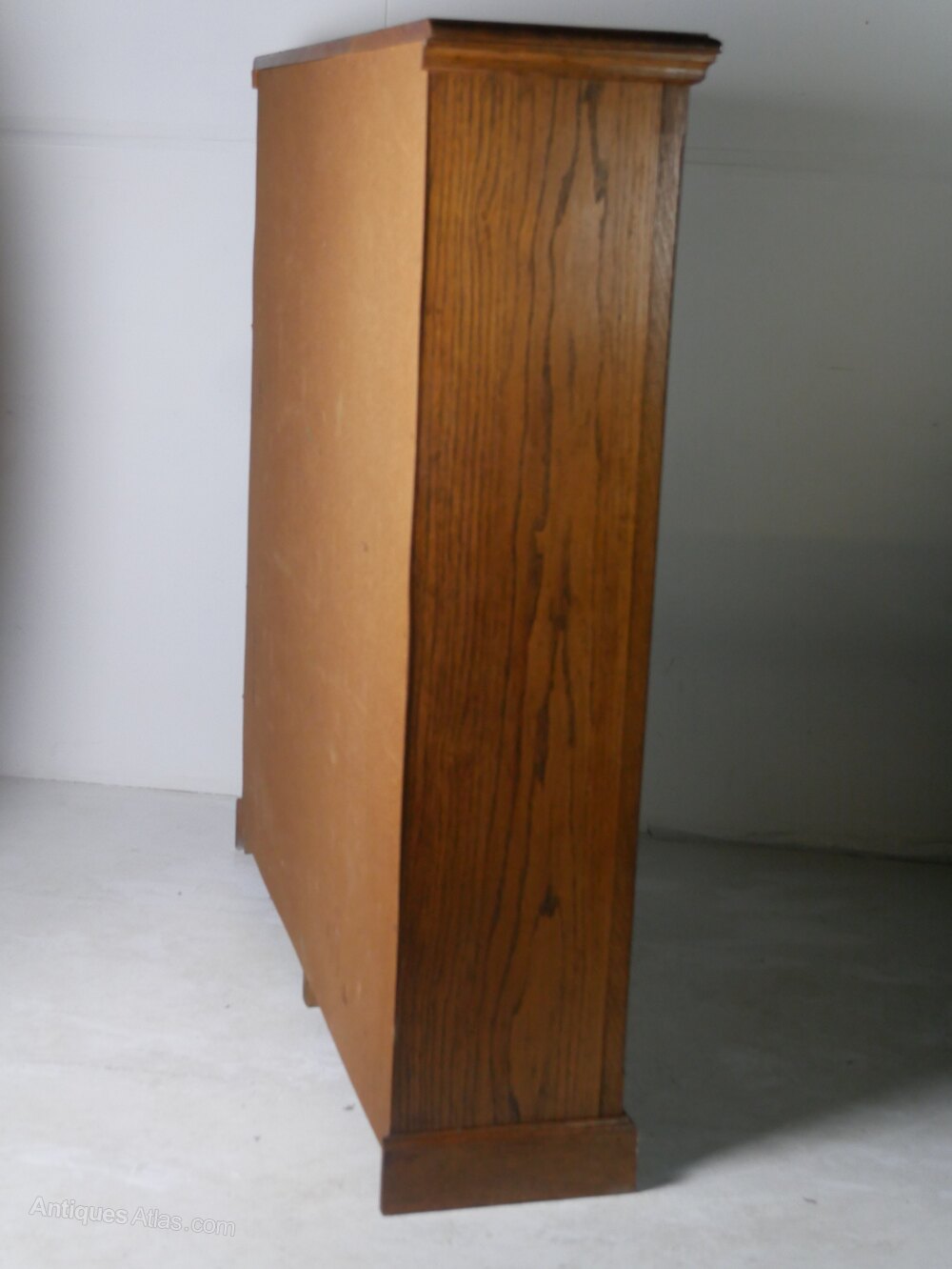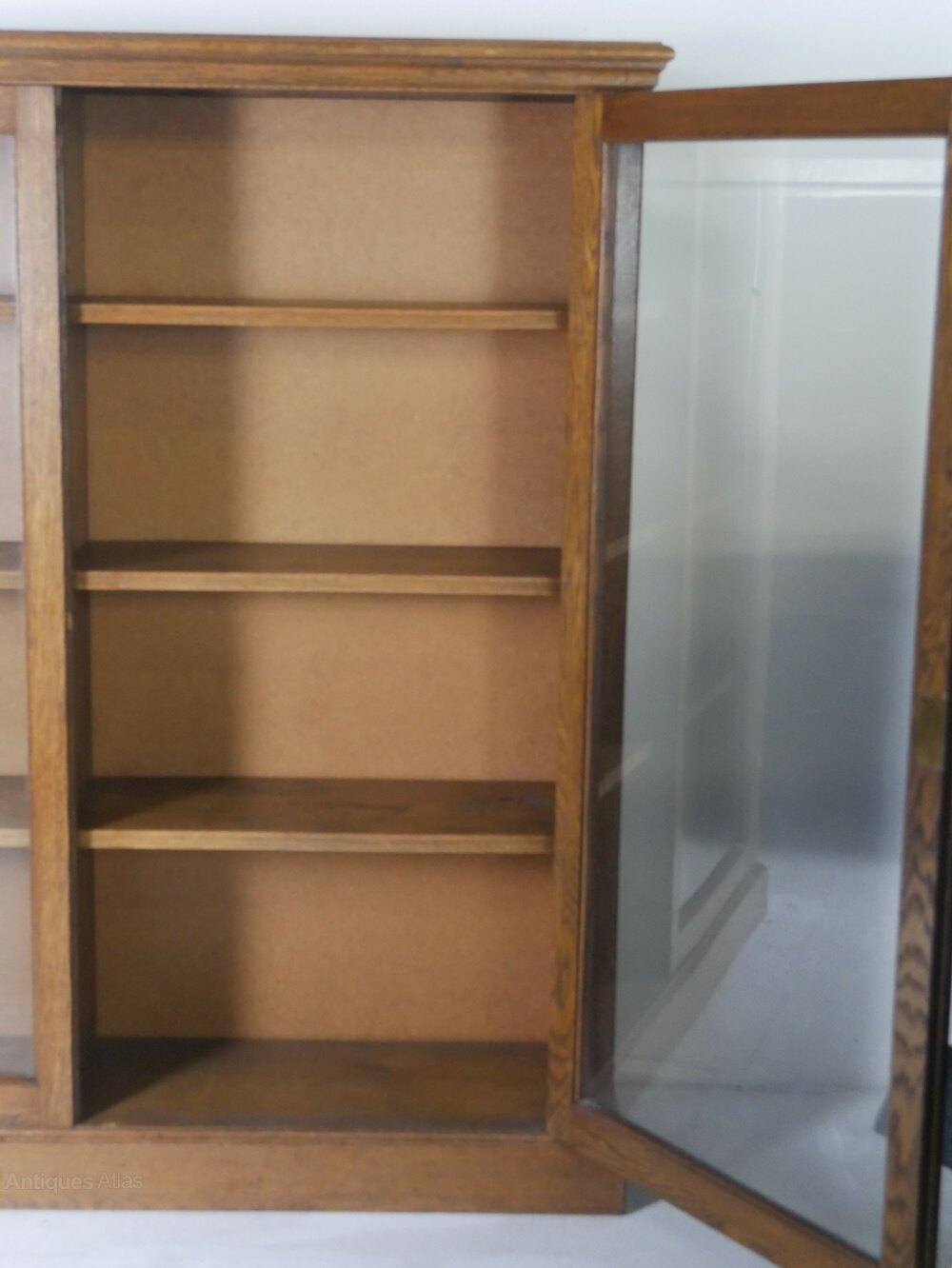 A very good quality oak bookcase, opening to solid oak fixed shelves, storage height 25.5cm28.5cm 29.5cm with the bottom shelf 33.5cm, depth of shelves 26cm. The bookcase is in very good strong condition, with a lovely colour, a replaced plywood back, working key, a very well made bookcase all ready for use.