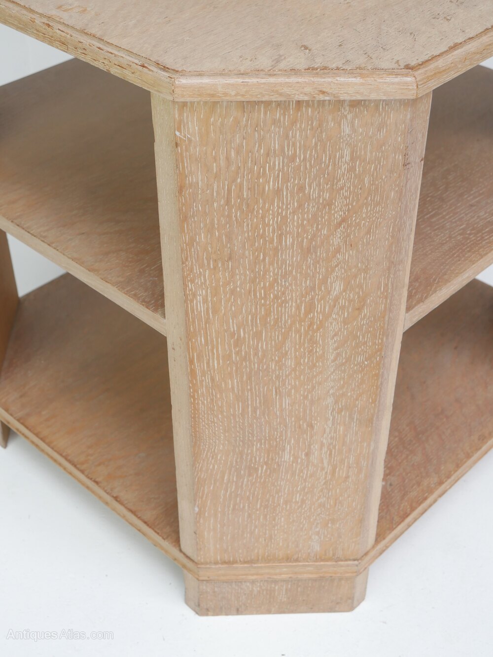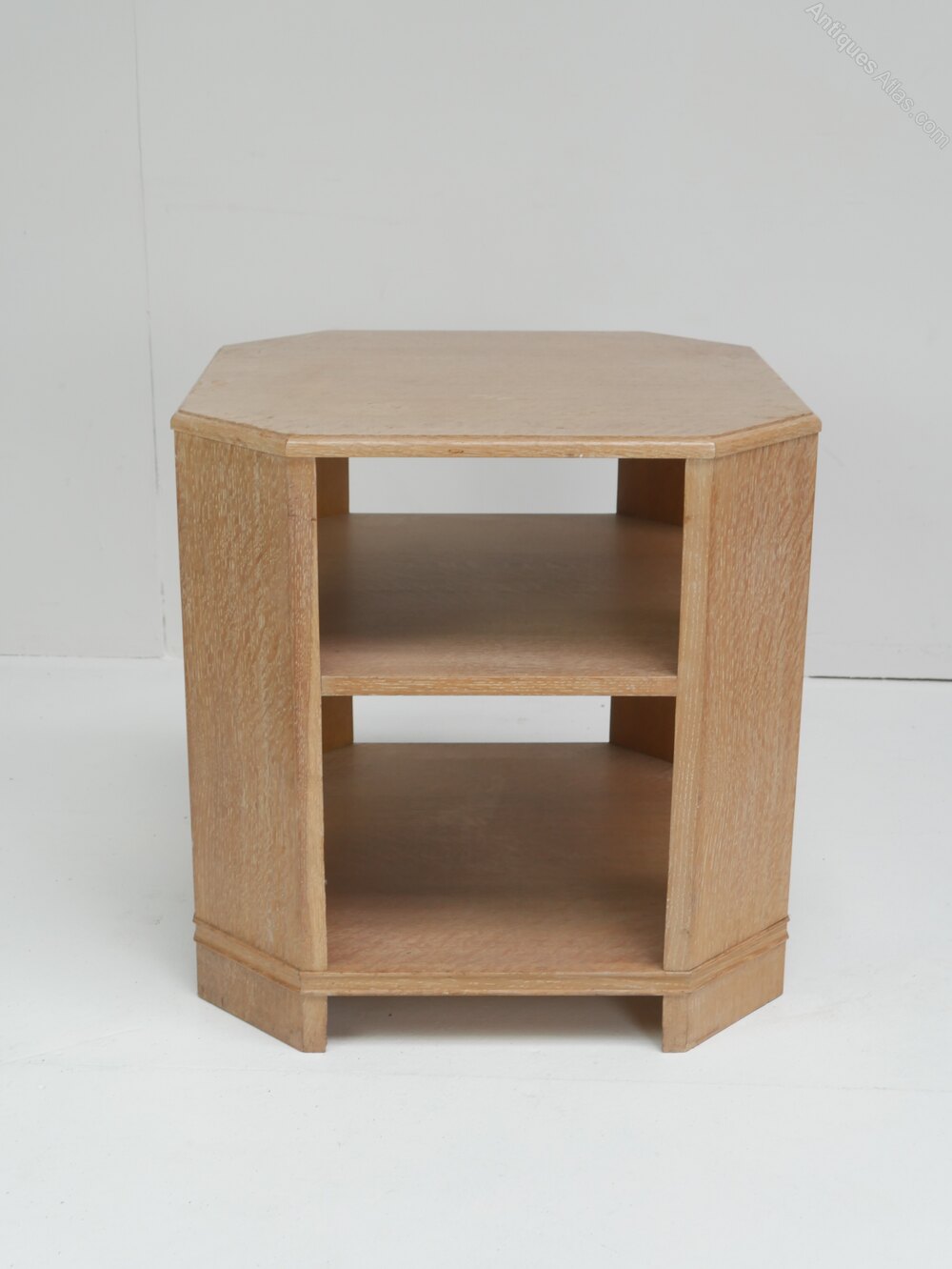 A useful limed oak book table with two undershelves, one 20cm and 27cm high, canted corners. The table is in good strong condition, some minor marks to the top, a nice colour, all strong and ready for use