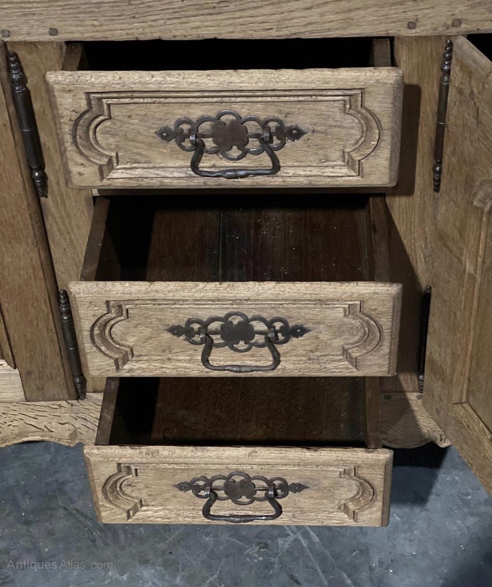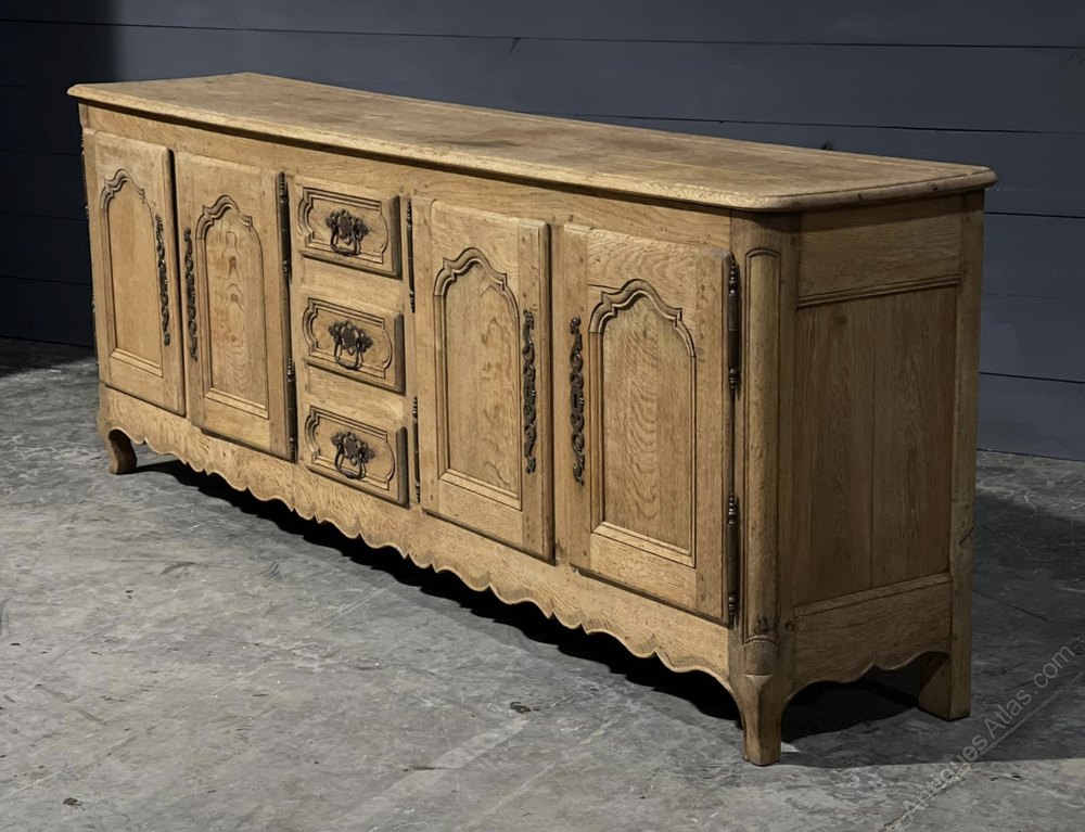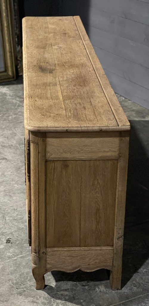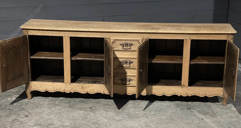 A rare long French enfilade, sideboard or dresser base, would make a great kitchen unit in a Farmhouse style kitchen. Made from Oak and dating to the mid 19th Century. Having 3 drawers and 4 doors all fitted with original hardware.