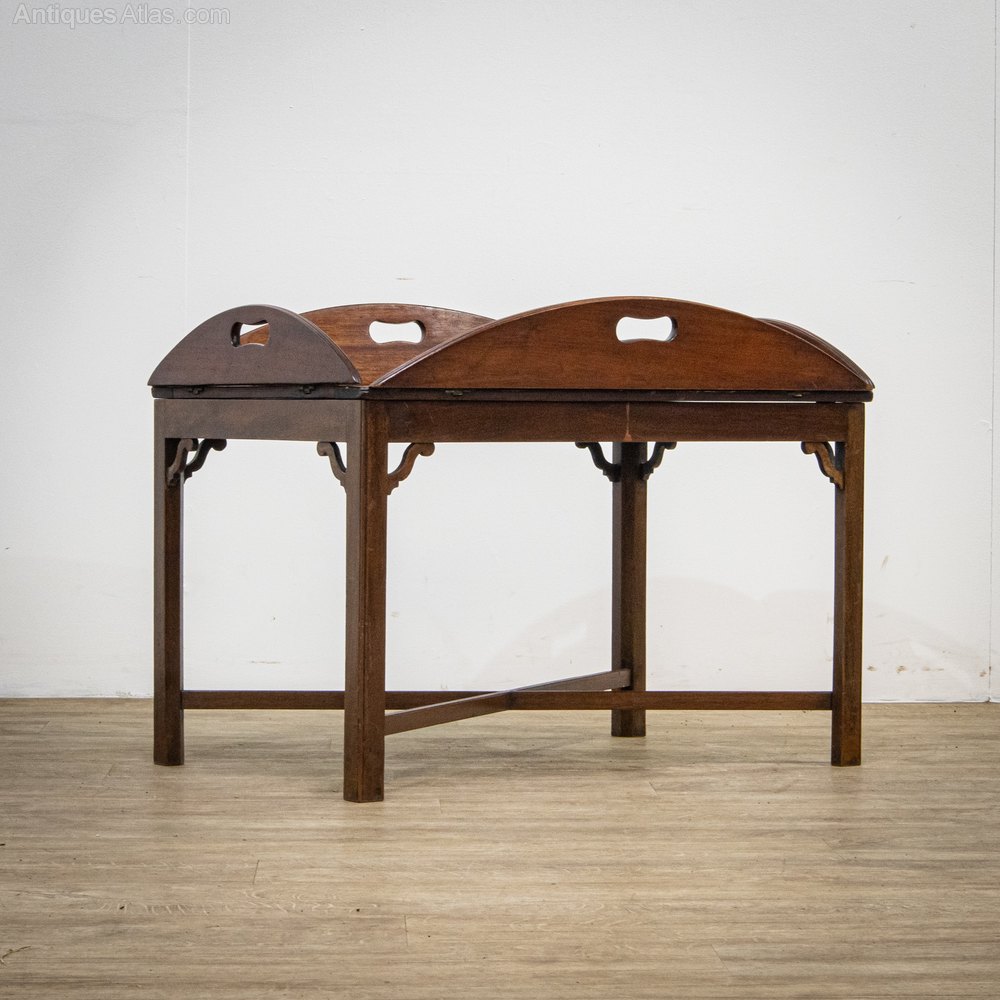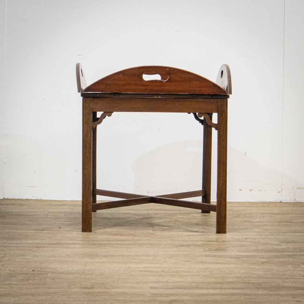 In the modern home, the design of this piece makes it a useful tray of good size which simply lifts off the stand, but can double up as a coffee table when the sides are folded down to increase the surface area and it is placed on the legs.