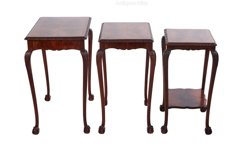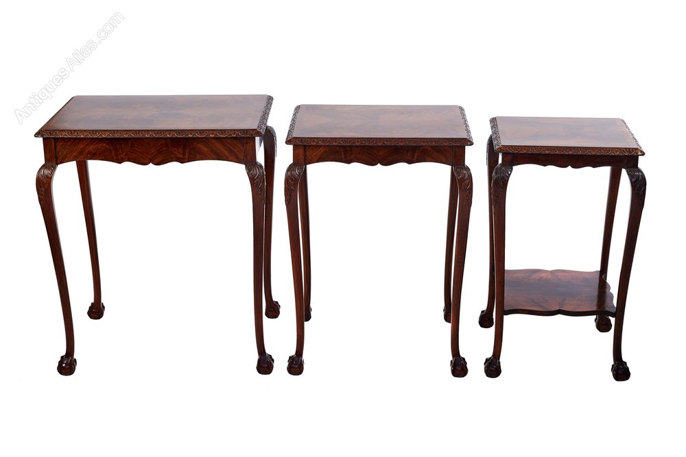 Mahogany & carved Nest 3 tables circa 1920s