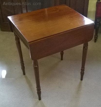 This early to mid 19th Century mahogany occasional table is a flexible little fellow. It has a good clean finish with a most useful drawer in one end, this is oak lined as can be seen in one of the pictures. The sides will lift to give a larger surface if required. It is an good example sitting on those fine elegant turned legs. This small pembroke table is unusual at this size and certainly available at the competitive price of only £290.00. A table that can fit in anywhere, all hall maybe with that useful drawer for keys. A bedroom perhaps as a bedside table, but also a great side table or lamp table.
