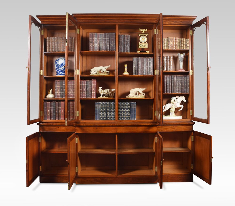 Large Breakfront Walnut Bookcase by Maple & Co.