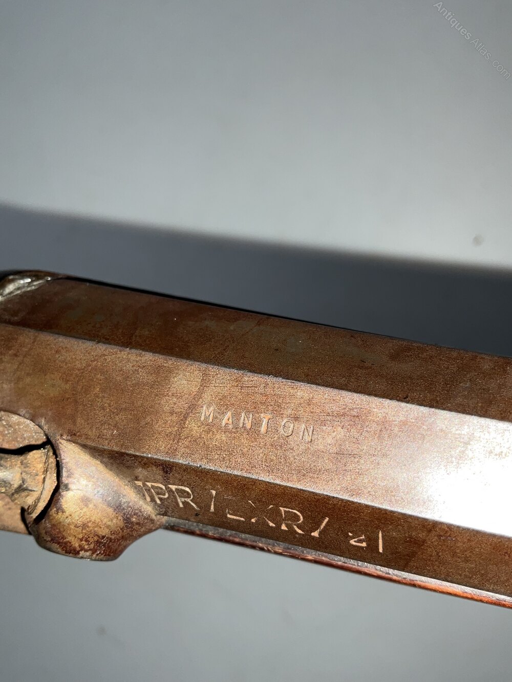 Early 19th century Blunderbuss made by the important Gunsmith MANTON. Blunderbuss is in very good condition and fully working order, issued to an Officer of The East India Company for his own personal protection, the barrel is of the finest Damascus steel ever produced and is in excellent condition inside and out having the length of 59 cm height being 15 cm depth of 5 cm, offering free UK delivery reference FRC Tel: +44 7505 165 843 We accept online payments for all our items listed: Bank transfer cash on collection or if wishing over the phone using your debit or credit cards, also doing layby payments plan, or email giving your address details & contact number and we shall send you your items invoice to make payment with your card. Send your request to - john.strong2@gmail.com