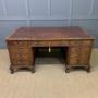 Antique Burr Walnut Leather Top Pedestal Desk