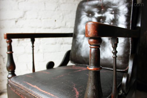 Antique Victorian Leather and Mahogany Armchair