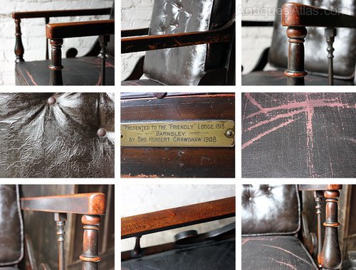 The chair bears a brass engraved plaque to the front rail which reads “Presented to the “Friendly” Lodge 1513 - Barnsley – By Bro Herbert Crawshaw 1908”