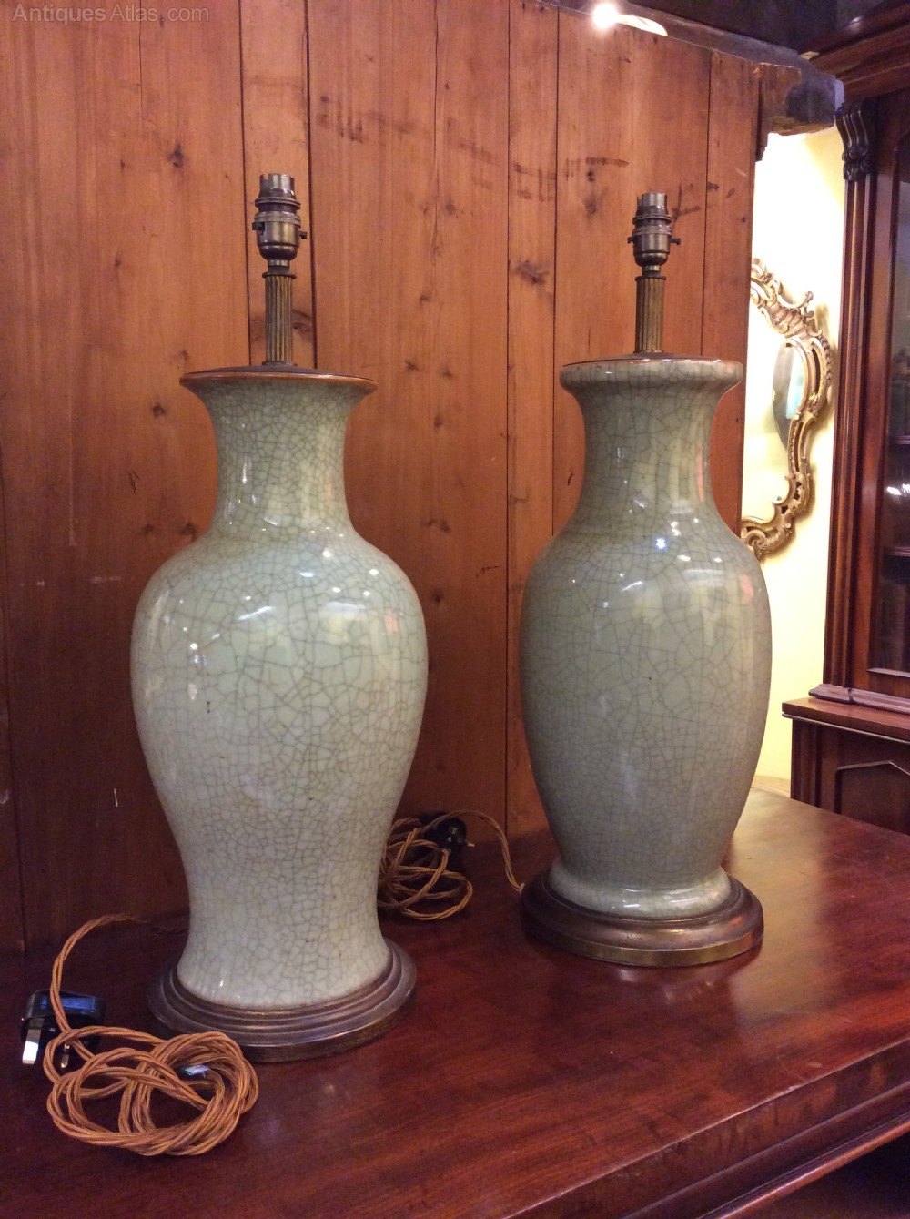 Matched Pair of Celadon Table Lamps