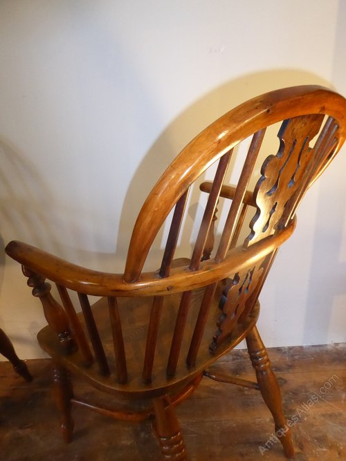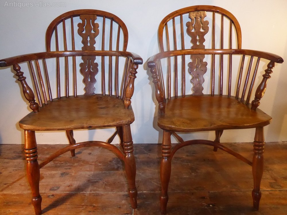 A good early 19th century matched pair of yew Windsor chairs with elm seats and ash back legs, the are a lovely colour and a comfortable seat.