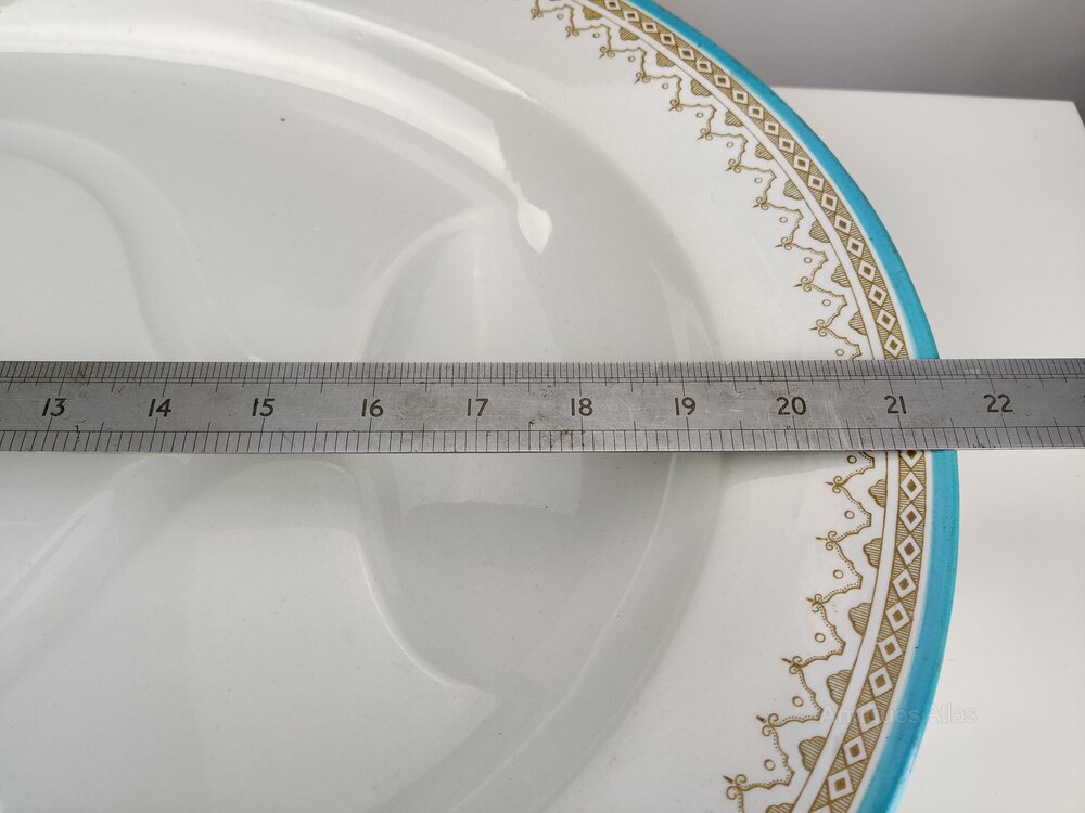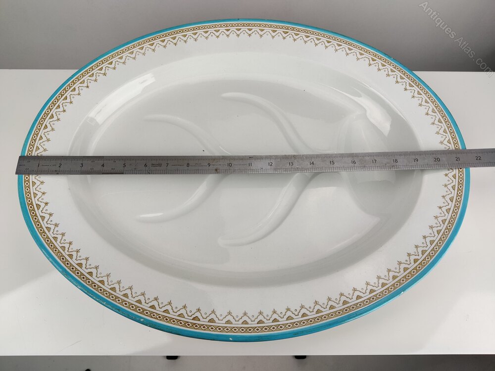 Smell the Sunday roast, or Christmas turkey... This beautiful large Royal Worcester meat plate is sure to 'meat' your needs... Good marks to the base with a lovely blue and gilt transfer border. In good condition with no chips or cracks. A beautiful piece which would grace any dining table!