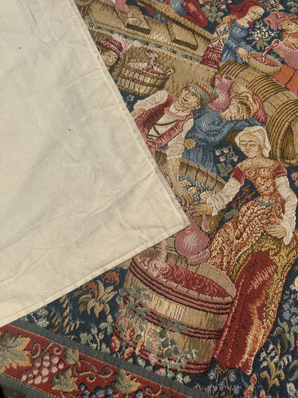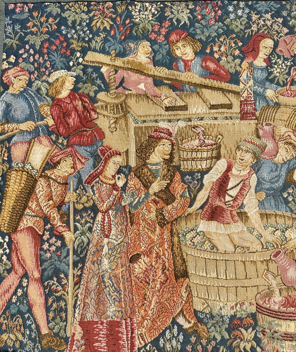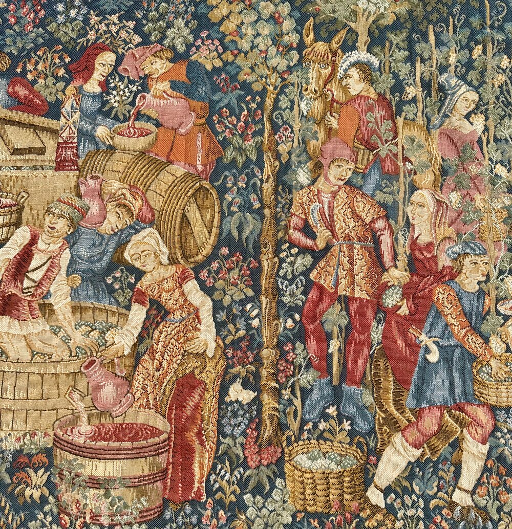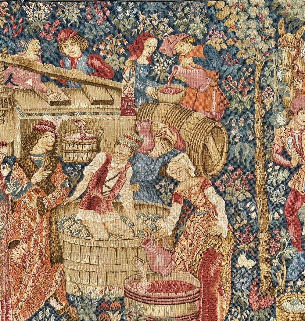 Medieval Harvest Tapestry Wall Hanging – Grape Harvest & Winemaking Scene