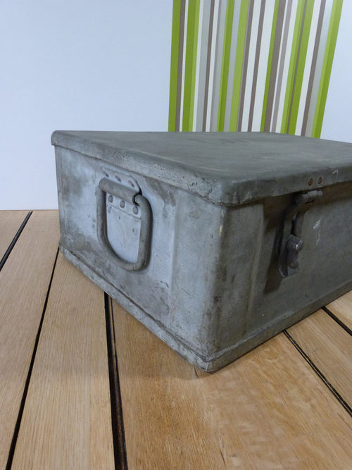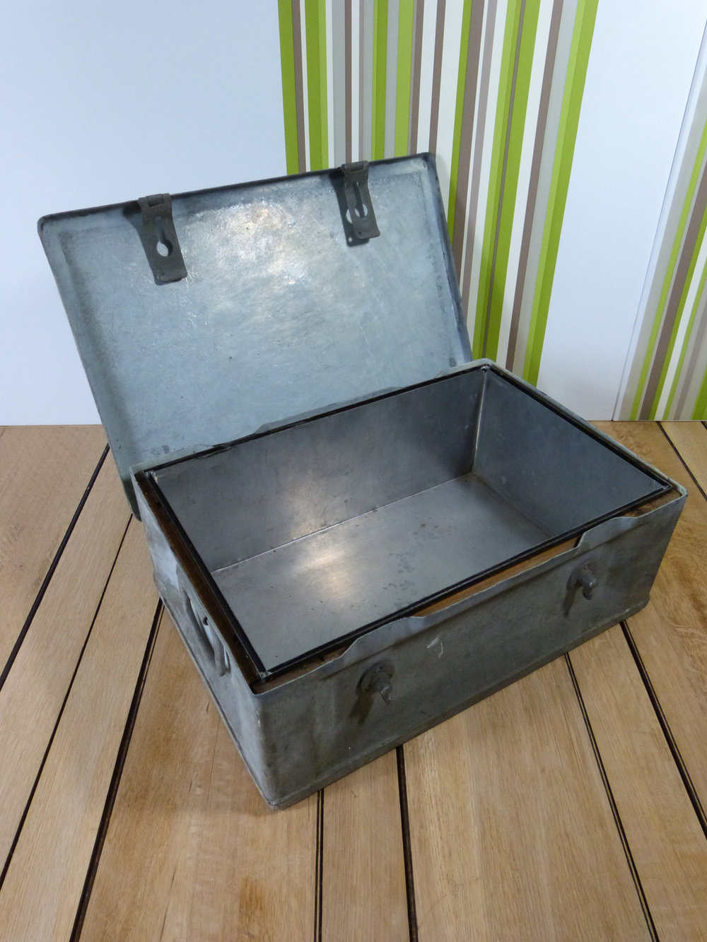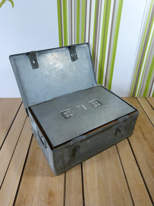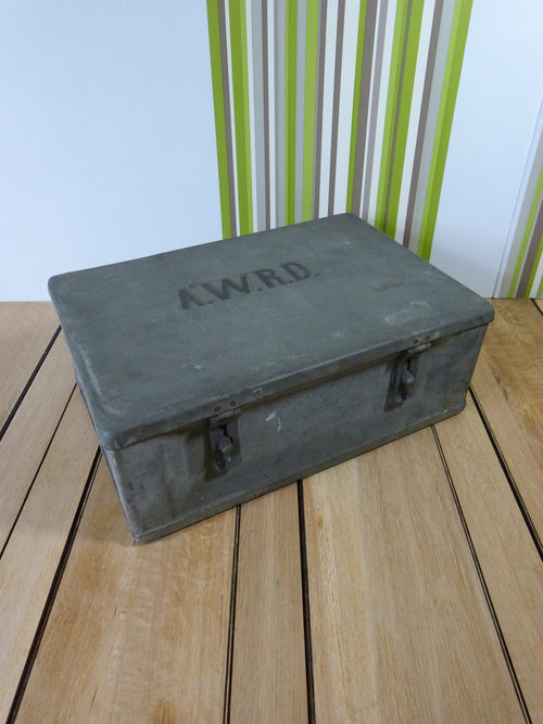 A Military ammunition's metal case with liner, and having a monogram on the lid A.W.R.D.