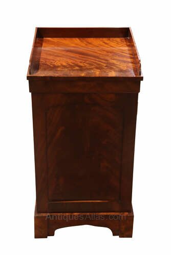 Standing on a plinth base with bracket feet, this compact yet elegant piece is versatile and perfect for use in a study, living room, or dining room. Its fine timber and rich patina showcase the quality craftsmanship typical of the period.