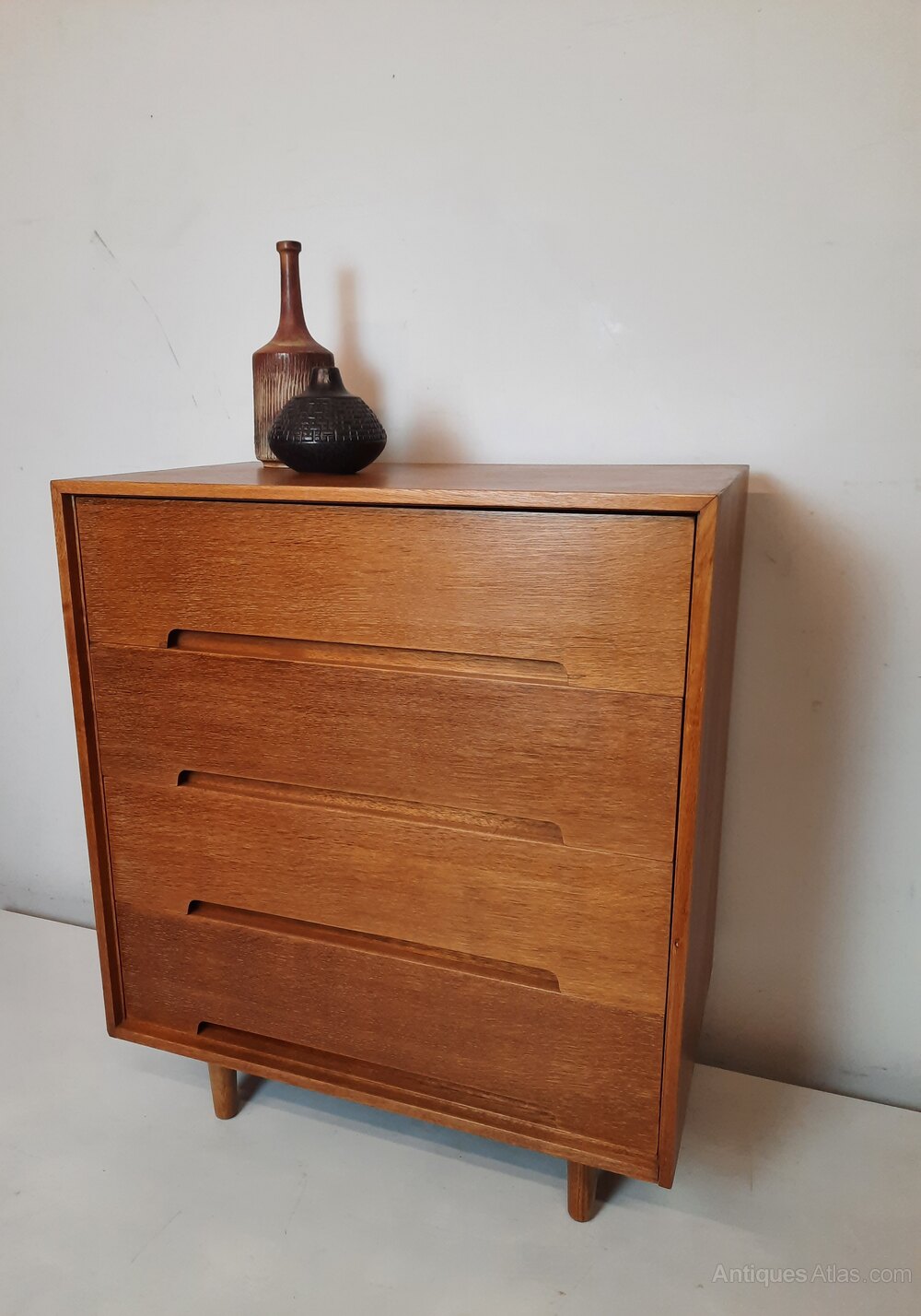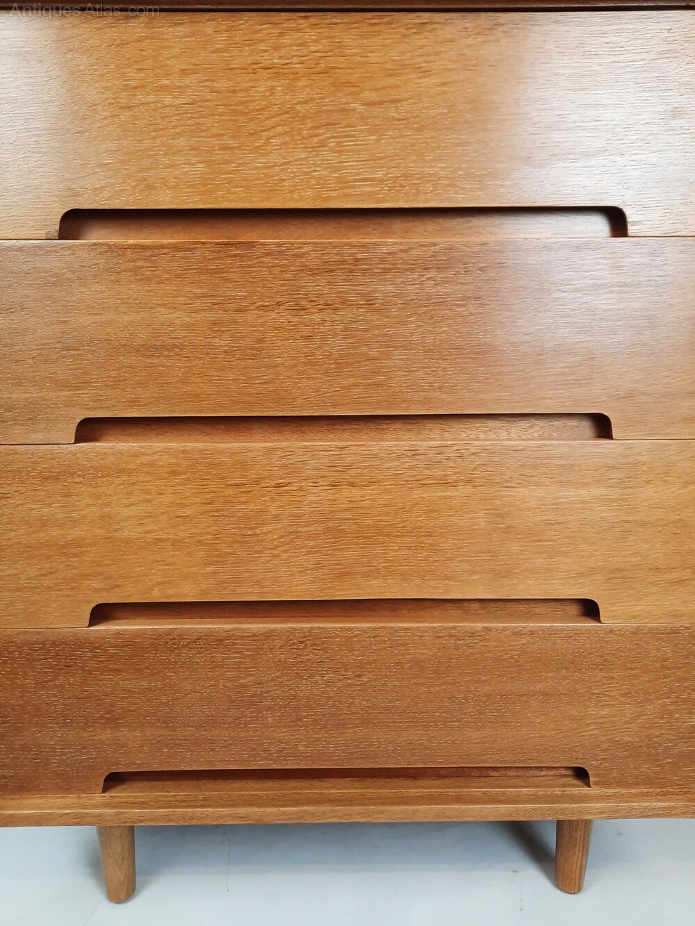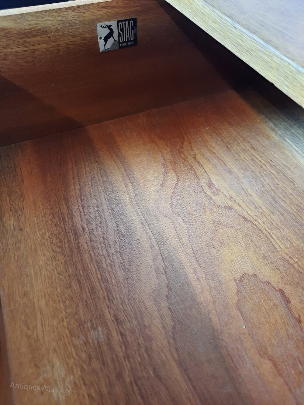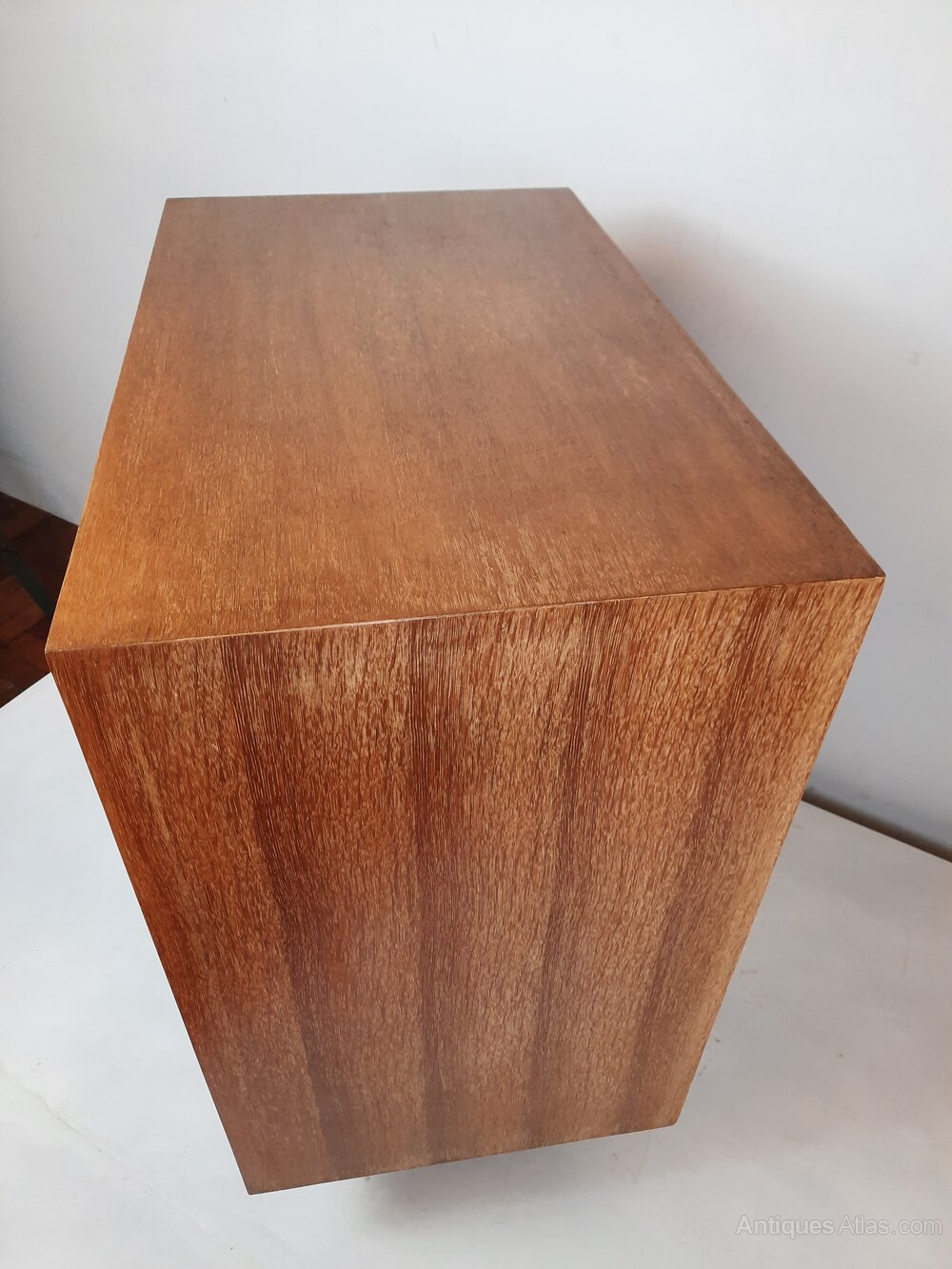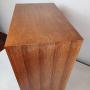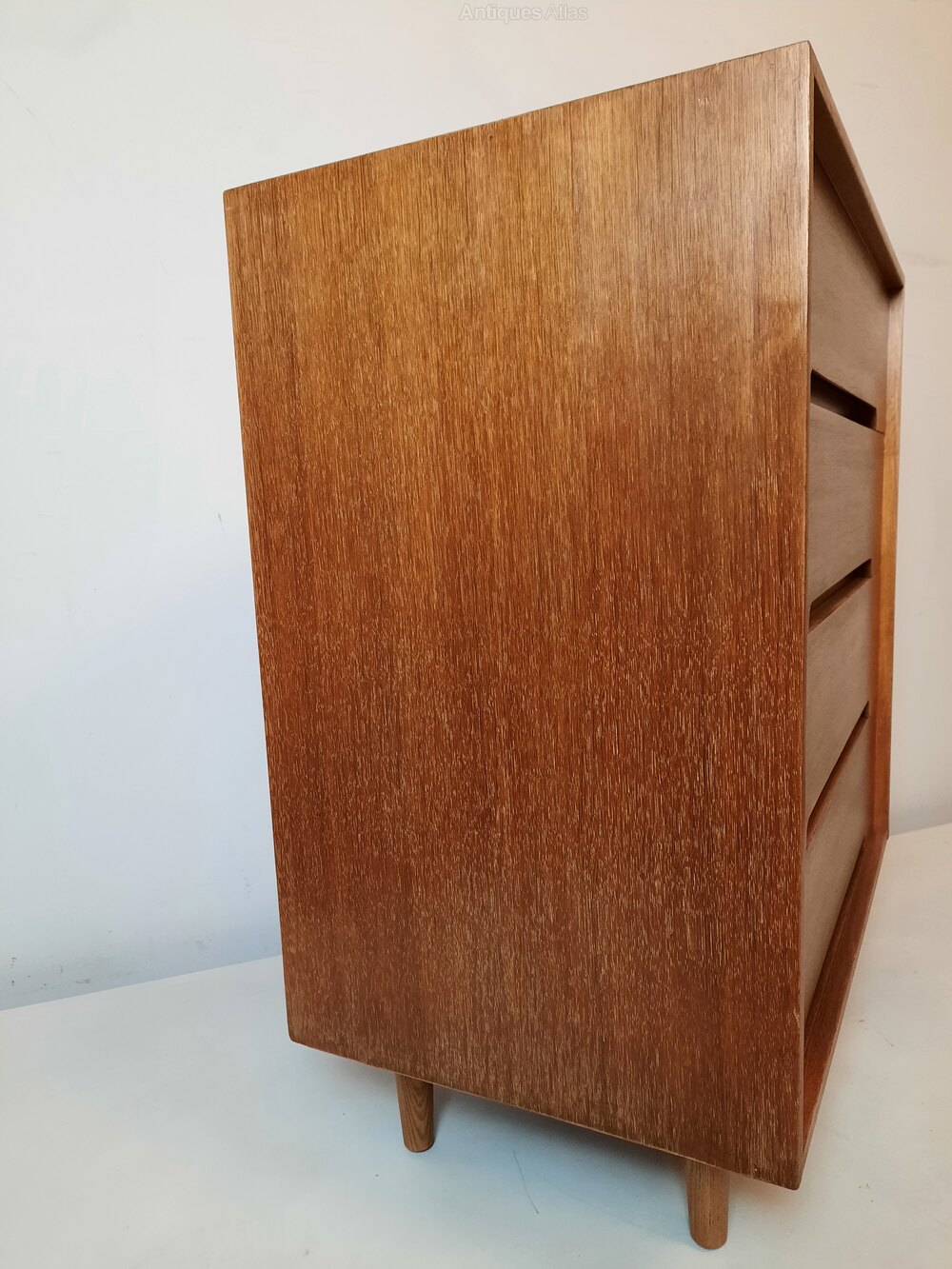 Made in oak veneers and afromosia.The chest has been re-polished however there are few marks reflecting age and use.