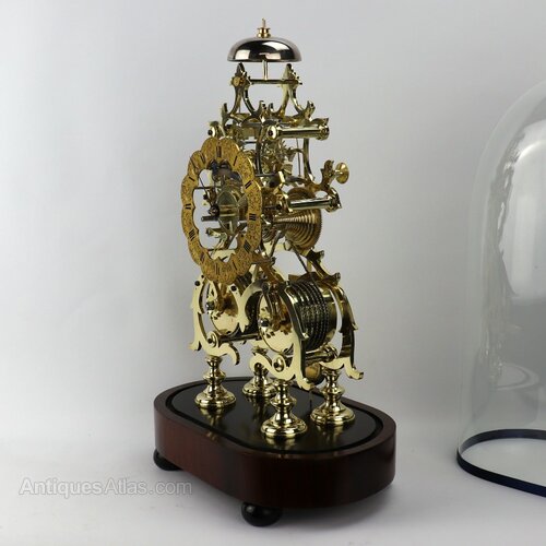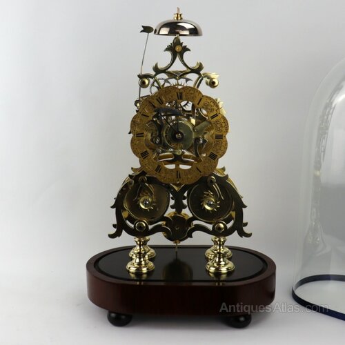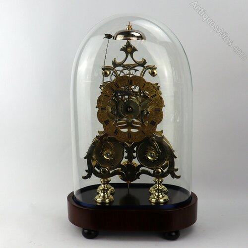 20thC Skeleton Clock in original glass dome