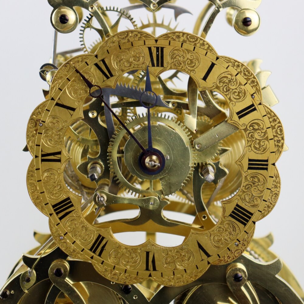 An attractive and representative example of the English skeleton clock tradition. Circa 1850.