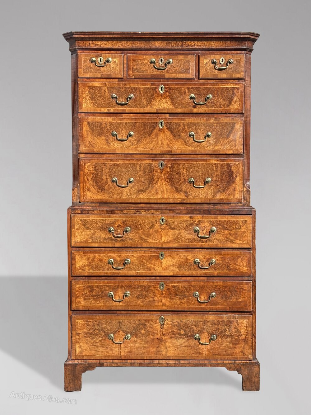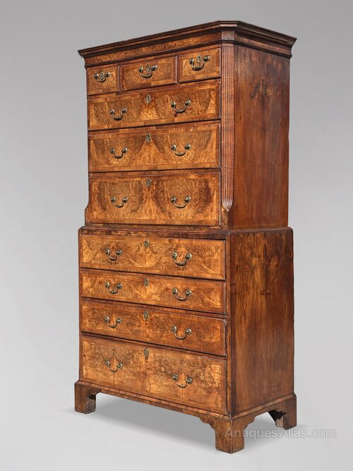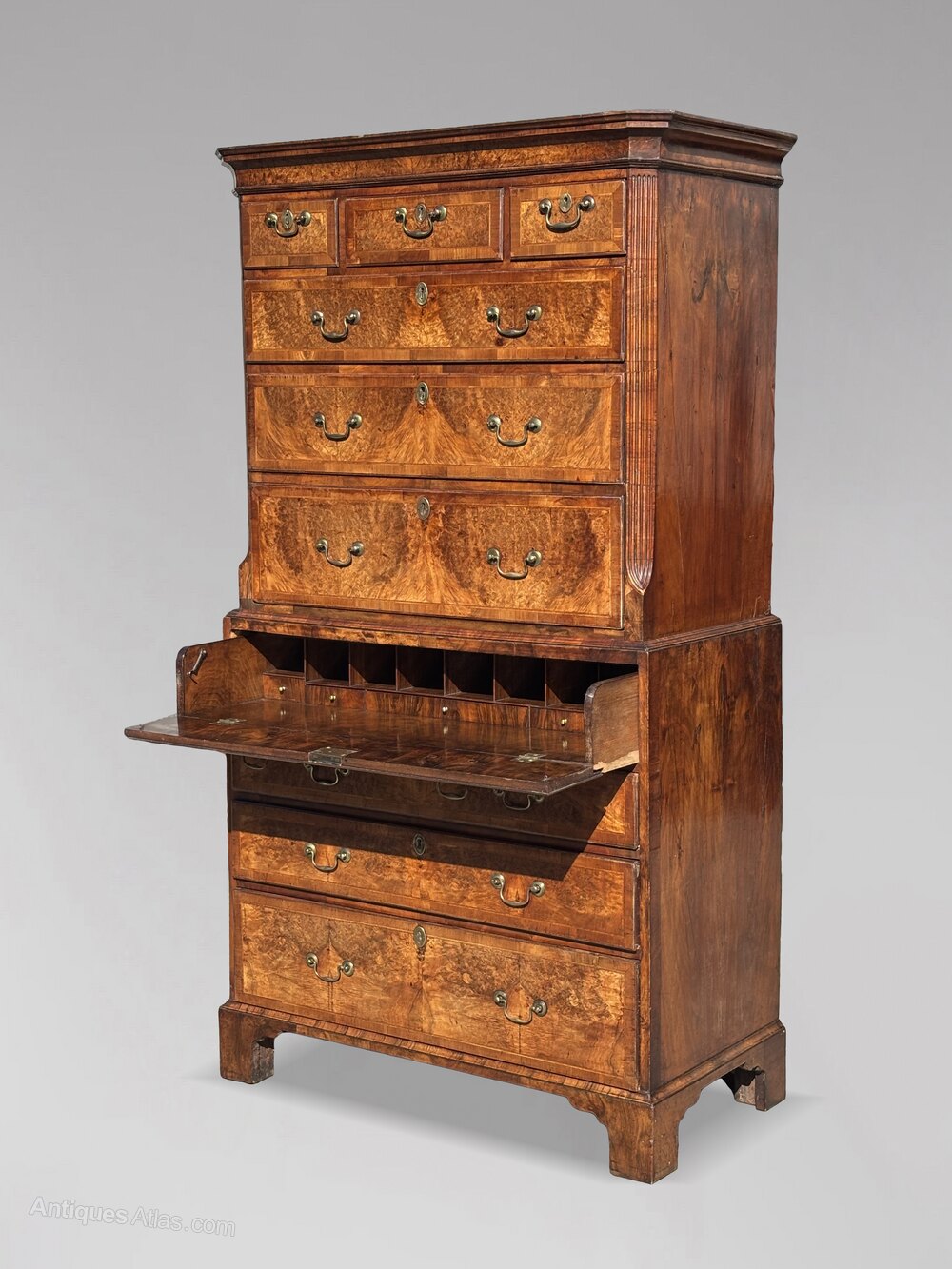 Very Fine Mid 18th Century George II Period Burr Walnut Secretaire Chest on Chest or Tallboy