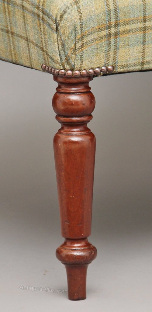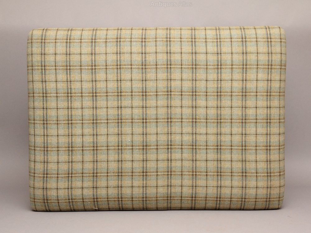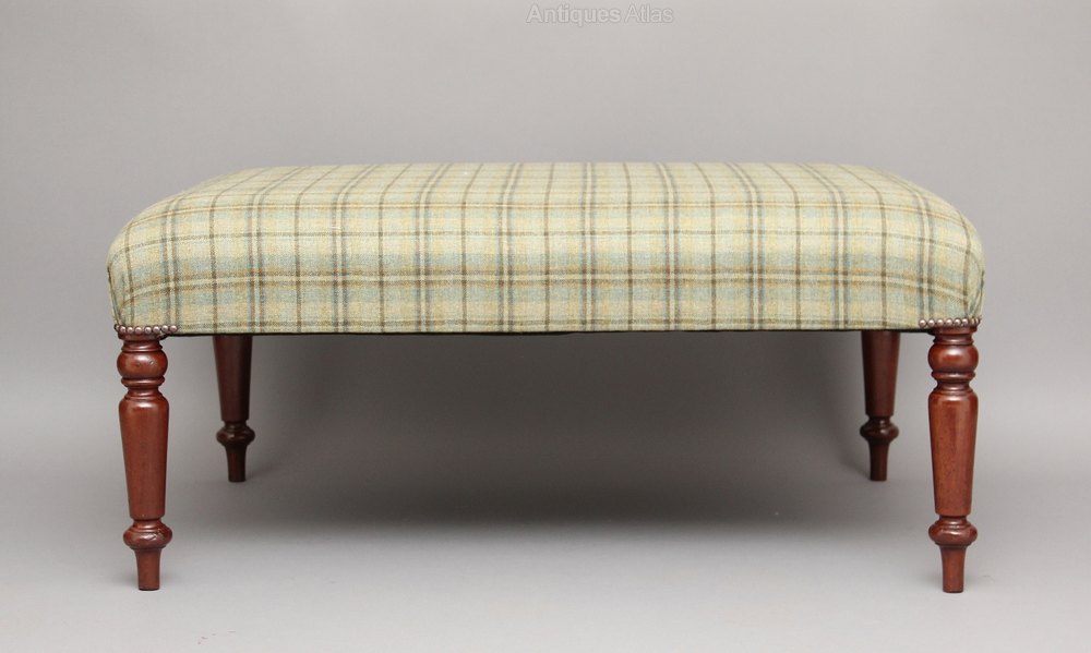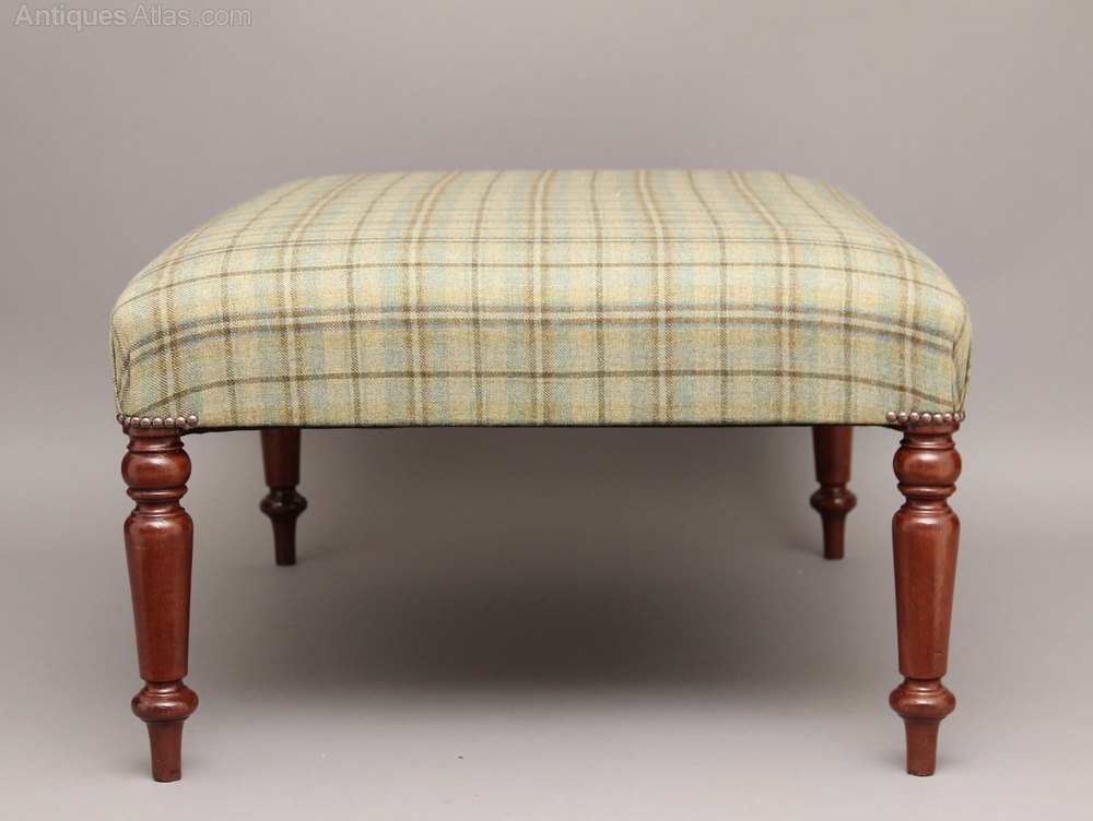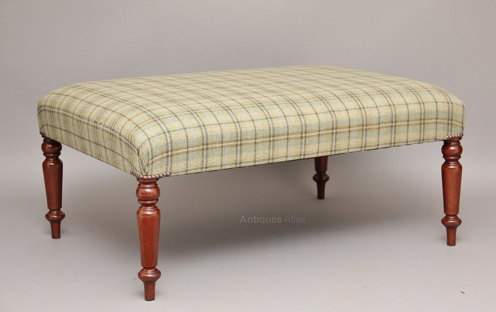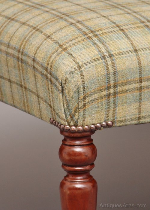 Mid 20th Century large center stool upholstered in a Harris tweed fabric standing on nice turned mahogany legs.