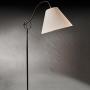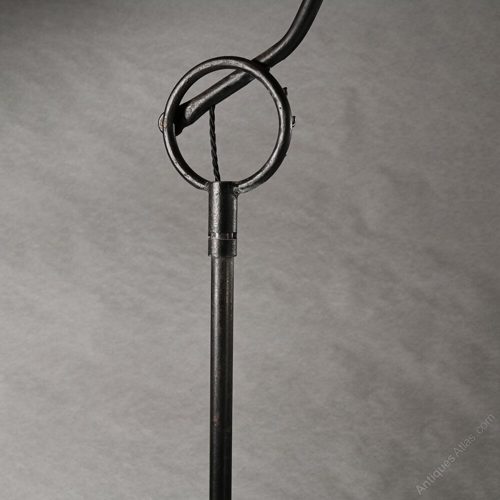 Of wrought iron with a beautifully patinated surface and a replaced shade, this lovely floor lamp is very much in the style of the great designer Jean Royère. Unusually, however, this piece has a rotating head for adjustability which makes it all the more practical and interesting along with having a five position fitting for height giving this piece slightly more flexibility, making it possible to create whatever lighting mood the owner requires with ease.