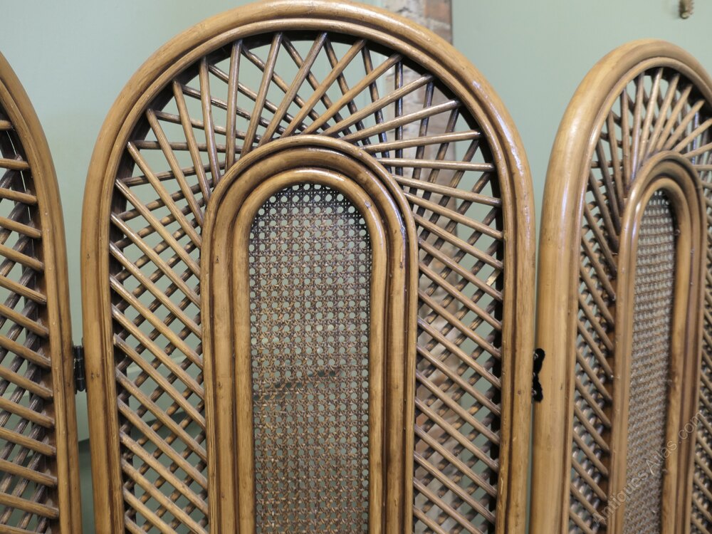 This is a very appealing piece, the screen is made from 1.5” wide giant bamboo, the top of each fold is curved it is in good vintage condition